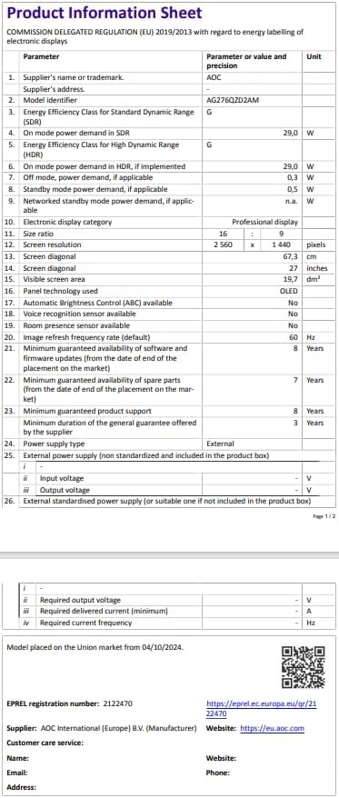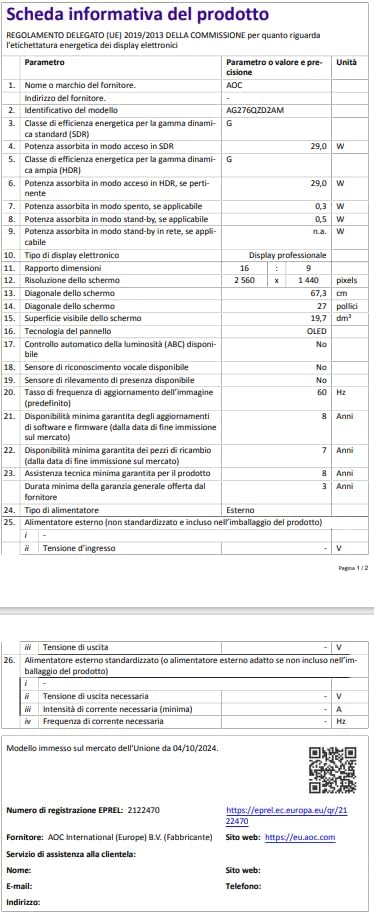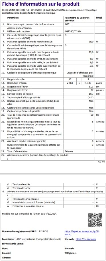 AOC AGON PRO AG276QZD2AM – 27 -اینچ مانیتور QHD OLED ، 240 هرتز ، 0.03 ms GTG ، Freesync Premium Pro ، Comp. G-Sync ، HDR400 2560×1440 ، 2x HDMI 2.1 ، DisplayPort ، Hub Black USB ، 27 اینچ QHD 27 اینچ QHD HDR400