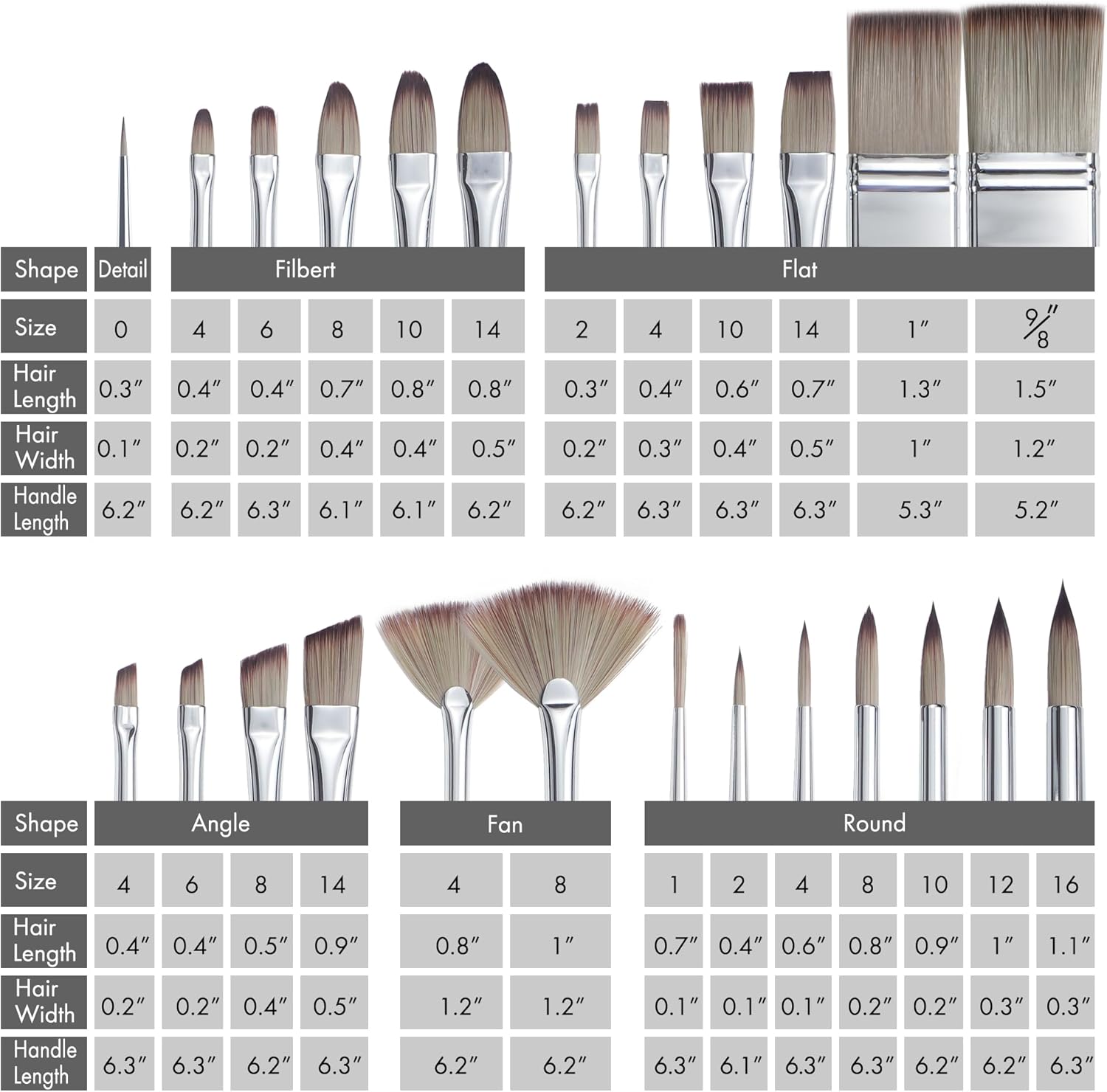 - SELECTED COLLECTION OF SHAPES AND SIZES - To bring out new inspiration, Artify has selected 24 brushes of different shapes and sizes as a set. They are linear, flat, angular, hazel, round, fan-shaped and comb-shaped. The brush set can satisfy you whatever detailed painting or larger applications, every stroke will come to life