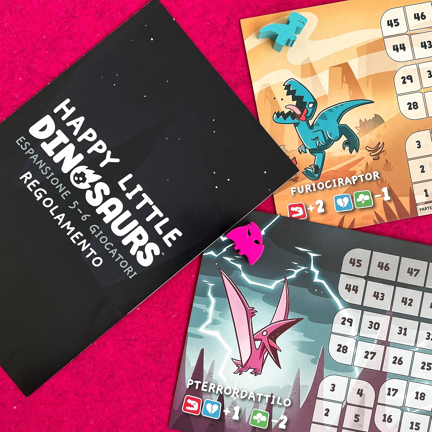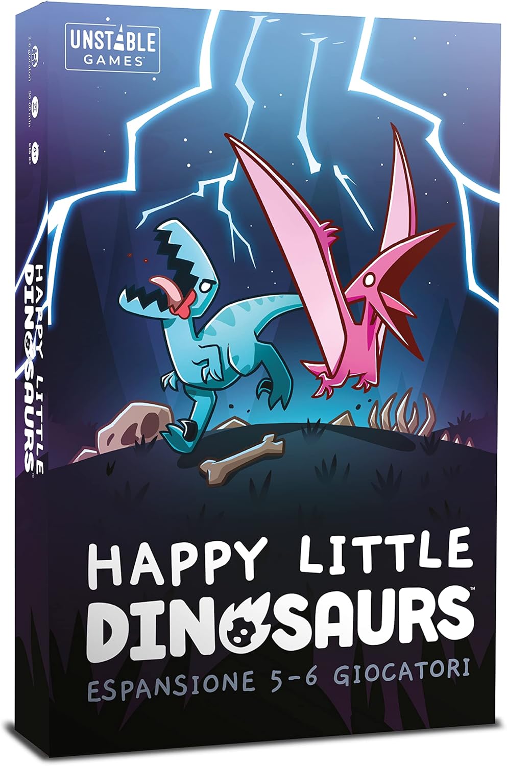 - Product 2: The 5-6 Player Expansion for Happy Little Dinosaurs introduces killer chickens, deadly tornadoes and terrifying movies