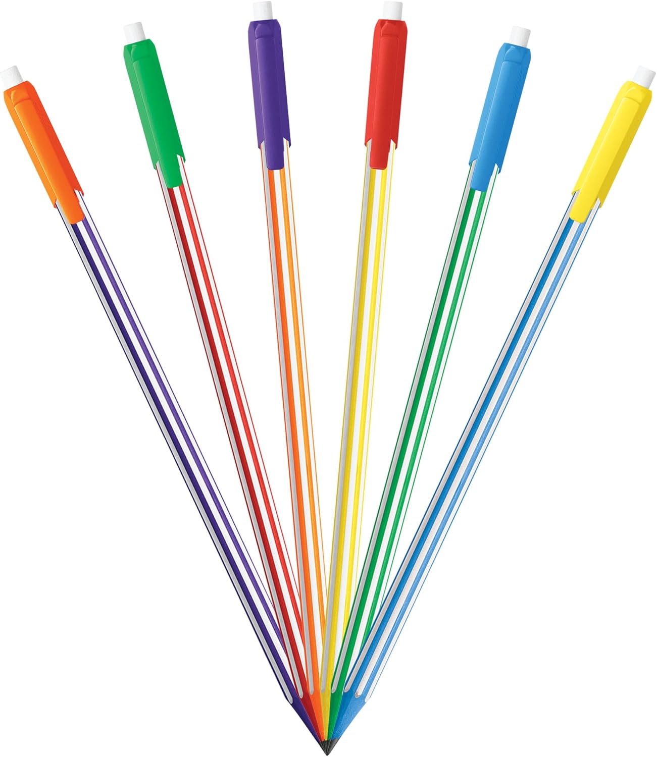 - Vibrant striped pencils and interchangeable caps to create custom color combinations.
