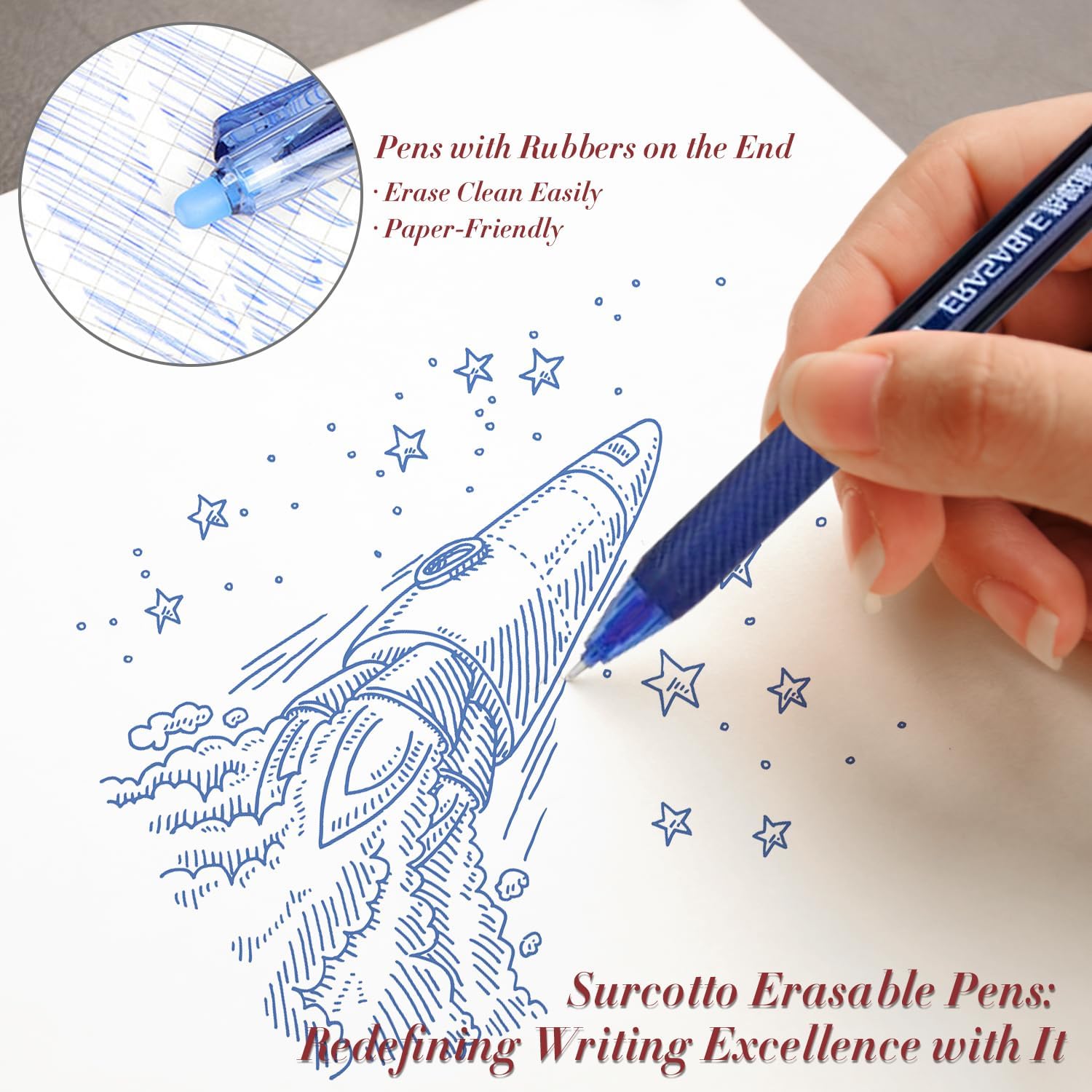 - For learning and working: whether you are a student or a professional, Surcotto erasable pens are your ideal companions. In your studies, you can freely correct errors in your notes. At work, you can easily draft and rewrite, saving time and improving efficiency.