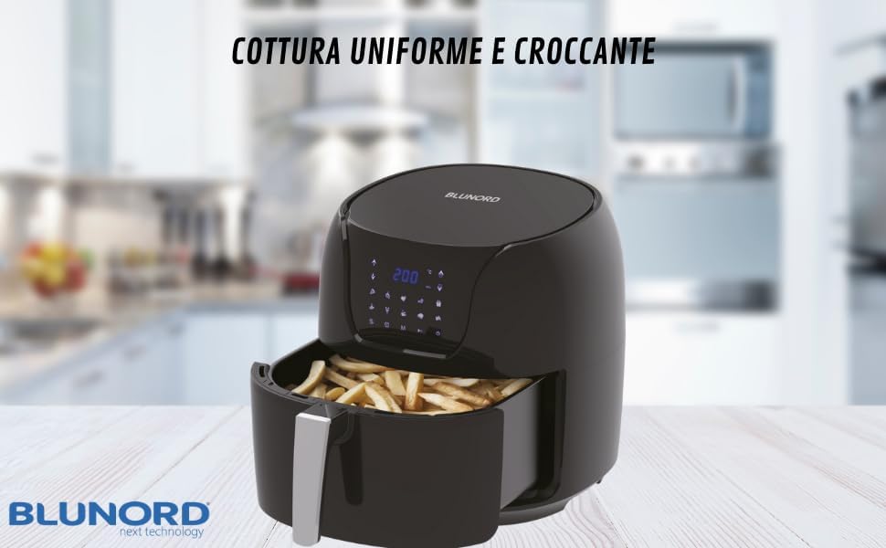 - PERFECT RESULTS WITHOUT THINKING: You don't need to be a chef. Thanks to the 8 pre-set programs (for chips, chicken, fish, desserts and more), you will no longer have to guess at temperatures and minutes. Select the icon on the touch display and the fryer will do everything by itself, guaranteeing perfect cooking. It is the ideal solution for those who have little time or don't like cooking.