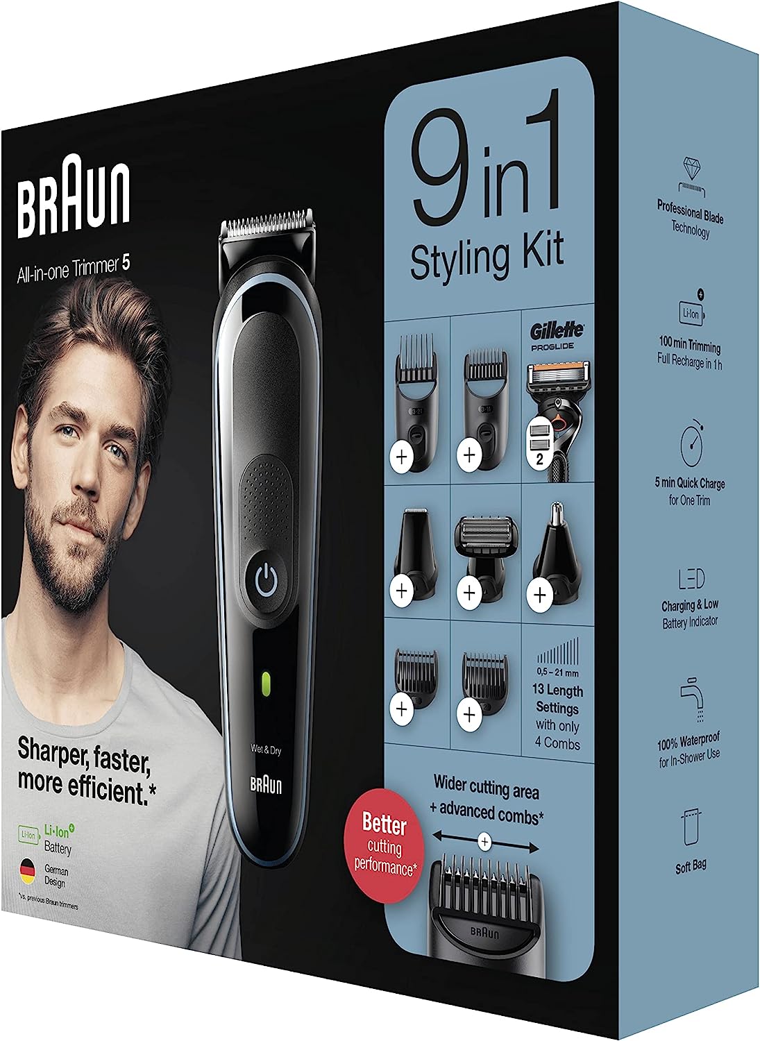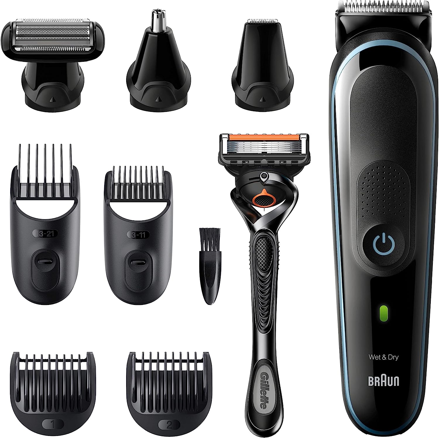 braun beard trimmer mens hair clipper razor included beard trimmer 9 in 1 styling kit 7 accessories ideal for face body ears and nose gift idea mgk5380 all in one blackمشاهده محصول در آمازون