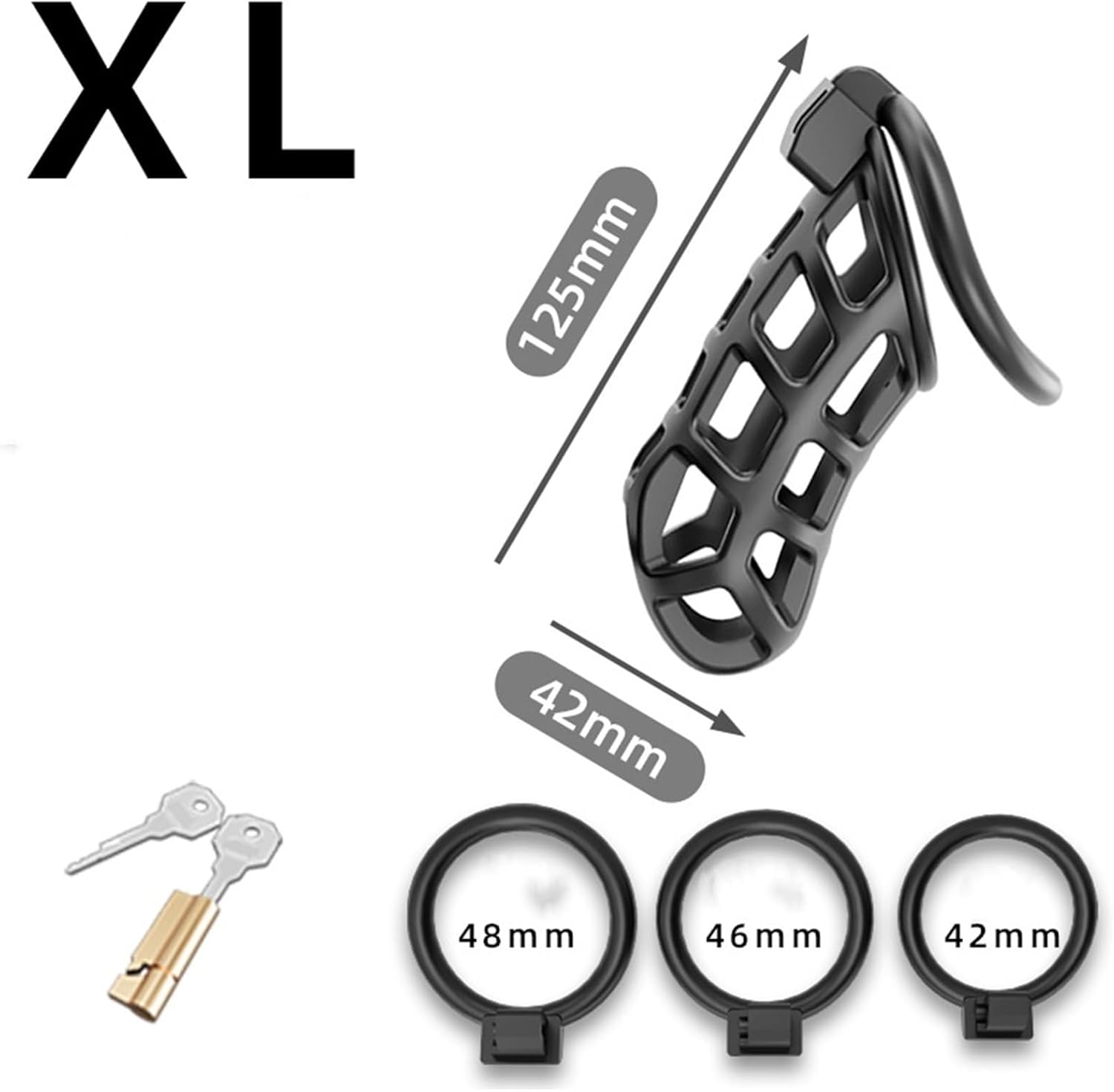 - Each cage is supplied with three interchangeable rings, to find the most suitable size.
