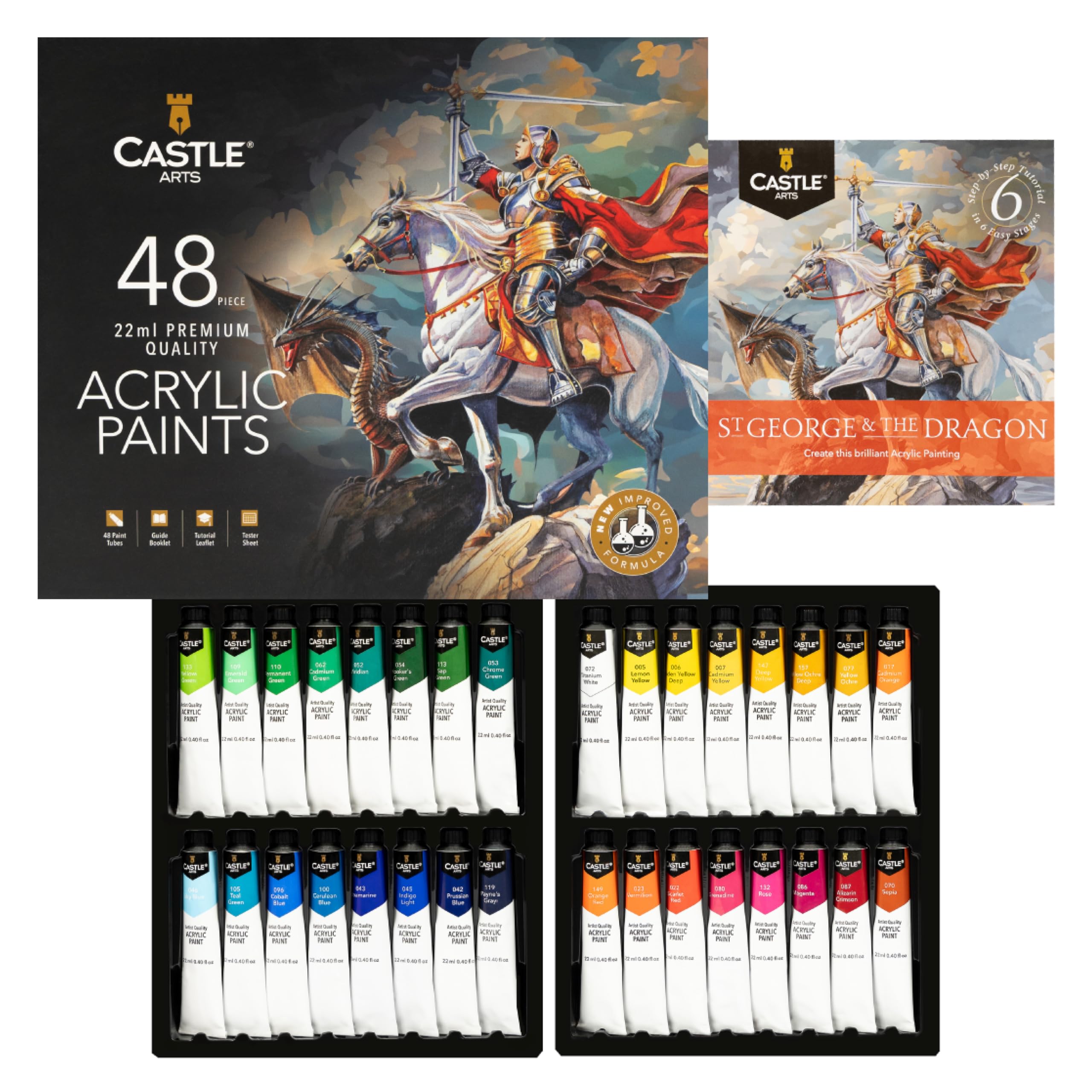 - Castle Art Supplies 48 x 22ml Acrylic Paint Set | Complete set for beginners and professionals | High quality intense colors | Easy to apply, many surfaces | Beautiful presentation box