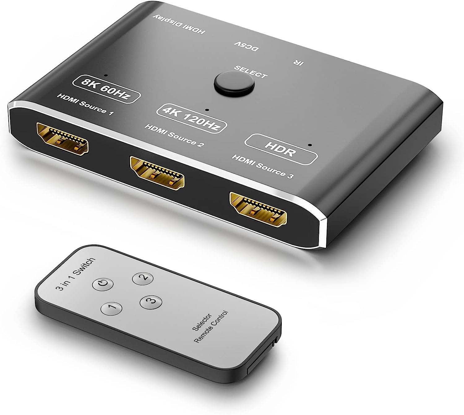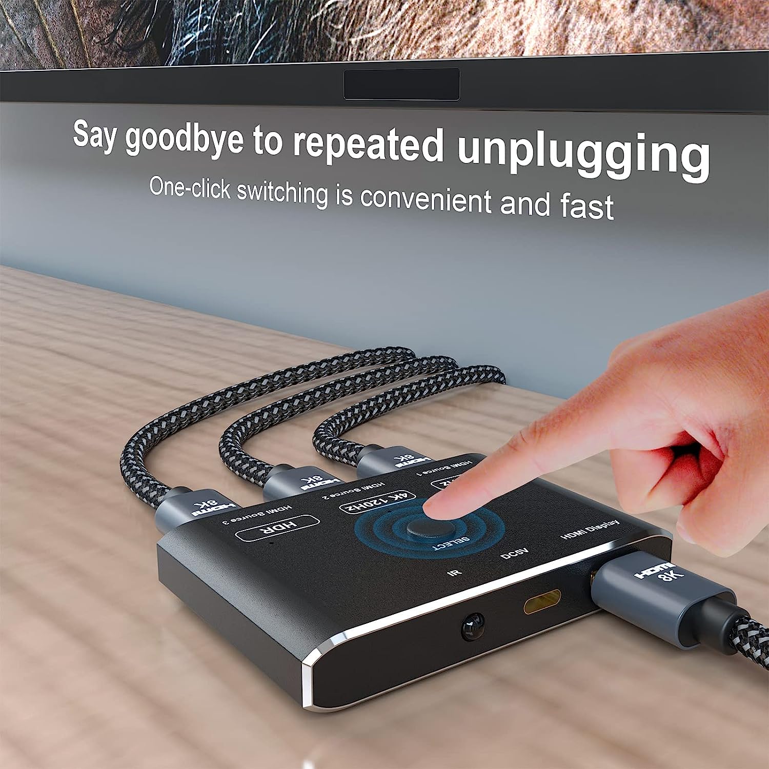 توضیحات محصول سوئیچ خودکار HDMI 2.1 8K 2.1 با کنترل از راه دور، پورت 3*HDMI 2.1 برای دستگاه منبع، 1: پورت HDMI 2.1 برای مانیتور یا تلویزیون HDMI 2.1، به طور موثر مشکل رابط HDMI2.1 کافی را حل کرد راهنمای اتصال: 1: خروج از دستگاه سوئیچ از بسته خود 2: منبع 1، منبع 2، منبع 3 را از سوئیچ ما با سه کابل HDMI جداگانه به دستگاه های منبع HDMI خود وصل کنید (اگر 3 دستگاه دارید باید متصل شوند) 3: "نمایشگر" را به HDMI خود وصل کنید مانیتورها 4: اتصال بین دستگاه منبع سیگنال و مانیتور سوئیچر ما باید کاملاً مطابق با علامت گذاری روی محصول باشد و اتصالات مختلط اکیداً ممنوع است. 5: کابل USB را برای منبع تغذیه به دستگاه USB خود وصل کنید. 6: سوئیچ خودکار، با استفاده از کنترل از راه دور برای تغییر یا فشار دادن دکمه "انتخاب" برای تغییر. این سوئیچر HDMI 8K از وضوح تصویر تا 8K@60Hz،4K@120Hz پشتیبانی می کند. این برای خروجی 4K@120Hz HDR در تلویزیونهای HDMI 8K شما از طریق PS5 و X Box x، یا دیگر آخرین دستگاههای منبع HDMI 2.1 8K کاملاً کار میکند. برای دوستداران بازی، PS5 یا Xbox x را از طریق سوئیچ HDMI ما به تلویزیون 8K خود وصل کنید، و سپس خروجی 4K@120Hz داشته باشید، که تجربه بازی روانی را برای گیمرها به ارمغان می آورد.