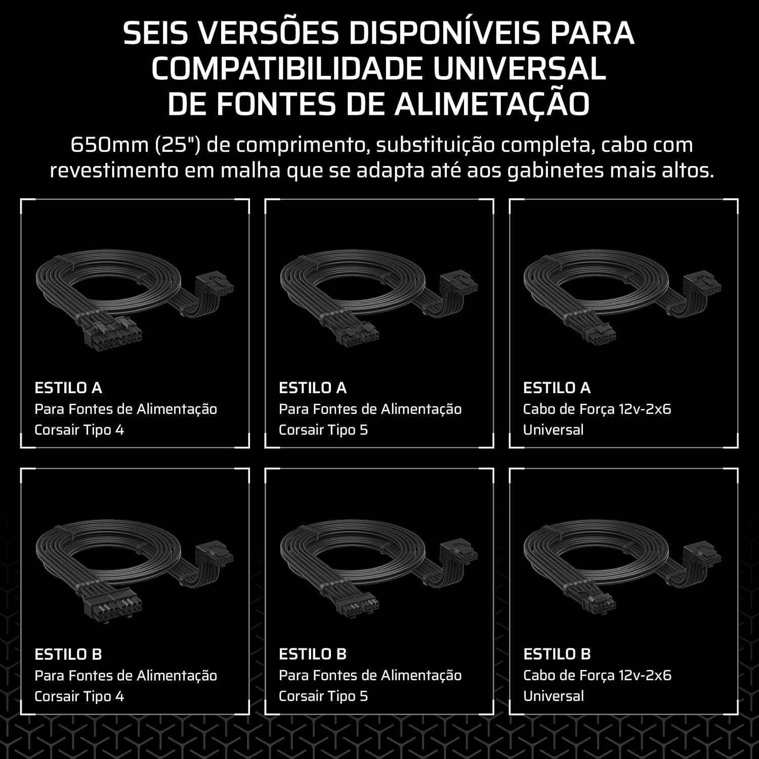 - Large compatibility: available in two versions with the detection PIN above (B -style B) or below (A) the 12 -pin connection, you have the freedom to instract the cable above or under the graphic tab and obtain the excellent design you were looking for; Choose from the Type 4, Type 5 or 12v-2x6 native connectors, which ensure the necessary compatibility with all the Corsair or PCIe 5.0/PCIe 5.1 PCIe