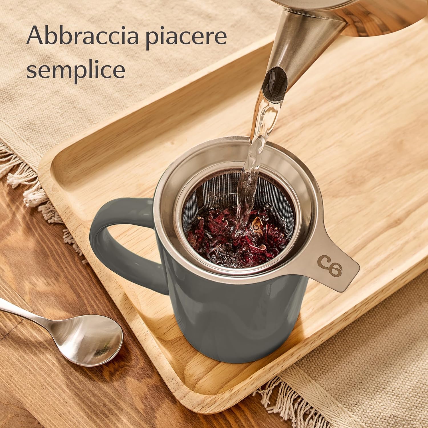 - IDEAL GIFT: 400ml ceramic mug with stainless steel filter and lid, packaged in a beautiful gift box.