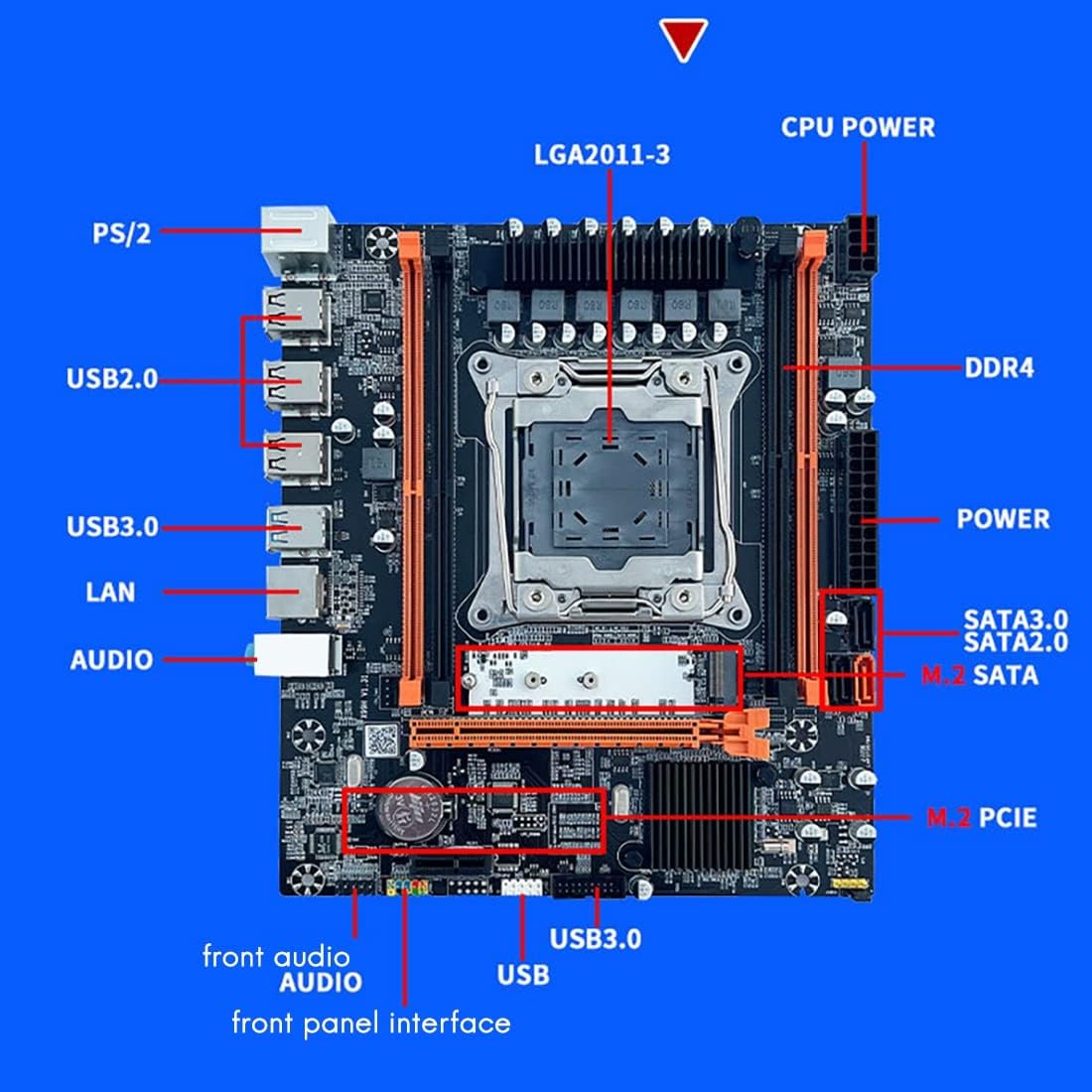 - Product Name: X99 Computer Motherboard; Model: X99T-DDR4; CPU Socket: LGA 2011-3; Supported CPU: Applicable to Zhiqiang V3 series and 7 series (support such as 5820K 5960K/E5- 2678 V3/E5 2676 V3/E5 2696 V3/E5 2629 V3/E5 2649 V3/E5 2668 V3, etc. (i7CPU cannot be matched at the same time) memory usage of the server)
