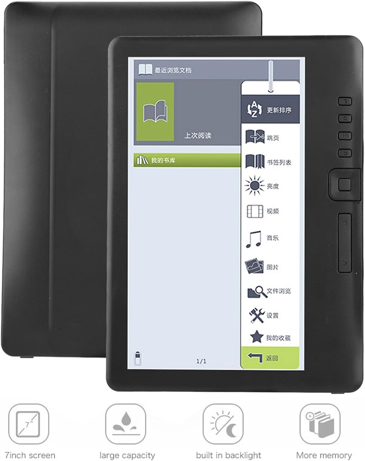 - 【SENSE OF PAPER READING】This e-Reader has a 7-inch ultra-clear electronic screen with clear text, restoring the sense of paper reading experience. The backlit screen has no reflections in strong sunlight.