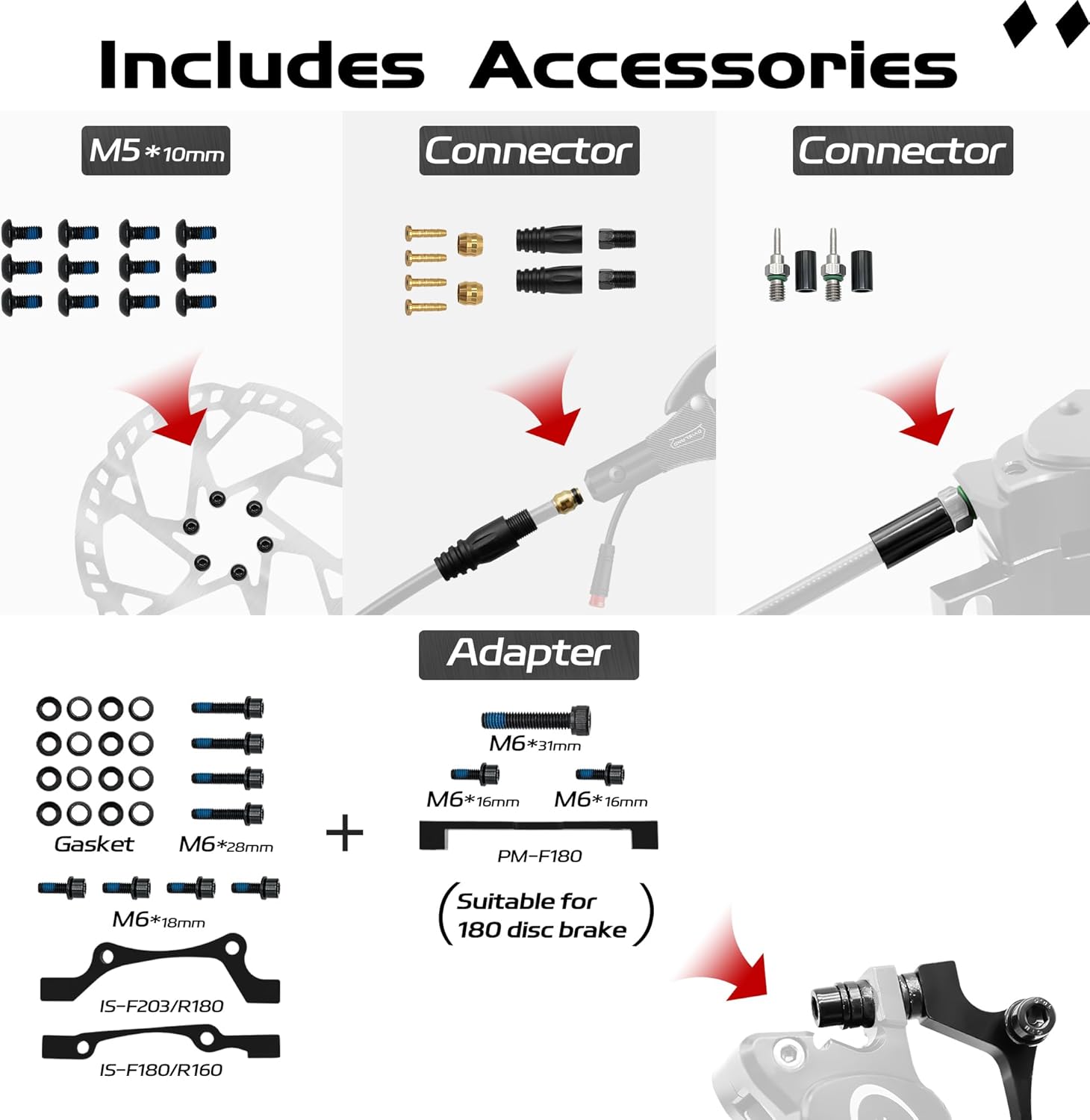 مجموعه Dyisland از ترمزهای دیسک هیدرولیک برای دوچرخه های الکترونیکی با 4 پیستون/2 پیستون ، 2 پین/3 پین از قبل با روغن معدنی ، با 2 قطعه روتور 180 میلی متر