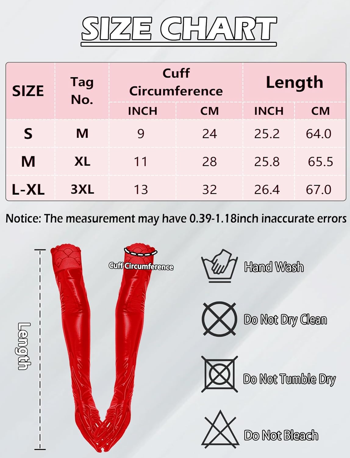 - Note: Women's long leather gloves. Hand wash only in cold water. Do not machine wash, do not bleach and do not machine dry