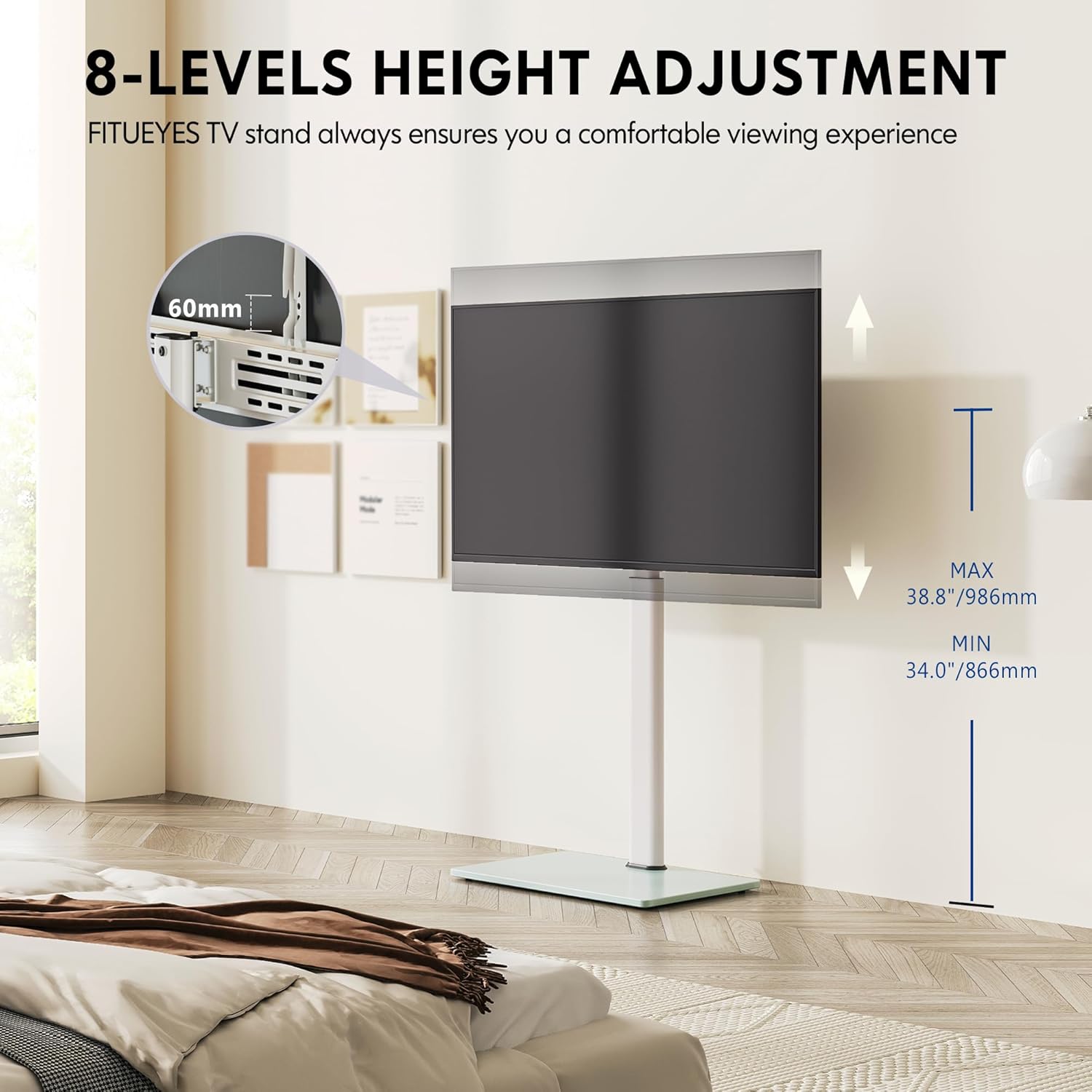 fitueyes floor tv support for 32 60 inches 70th swivel and 8 mobile height tv holder from the ground tv support from the ground in 8mm tempered glass max vesa 600x400mm whiteمشاهده محصول در آمازون