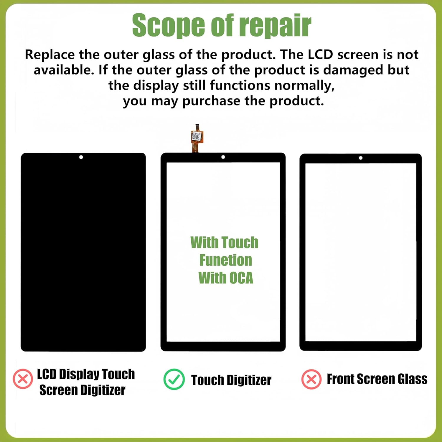 - Repair scope: Replace the outer glass of the product. The LCD screen and touch function are not present. If the outer glass of the product is damaged, but the display still works properly, you can purchase the product.