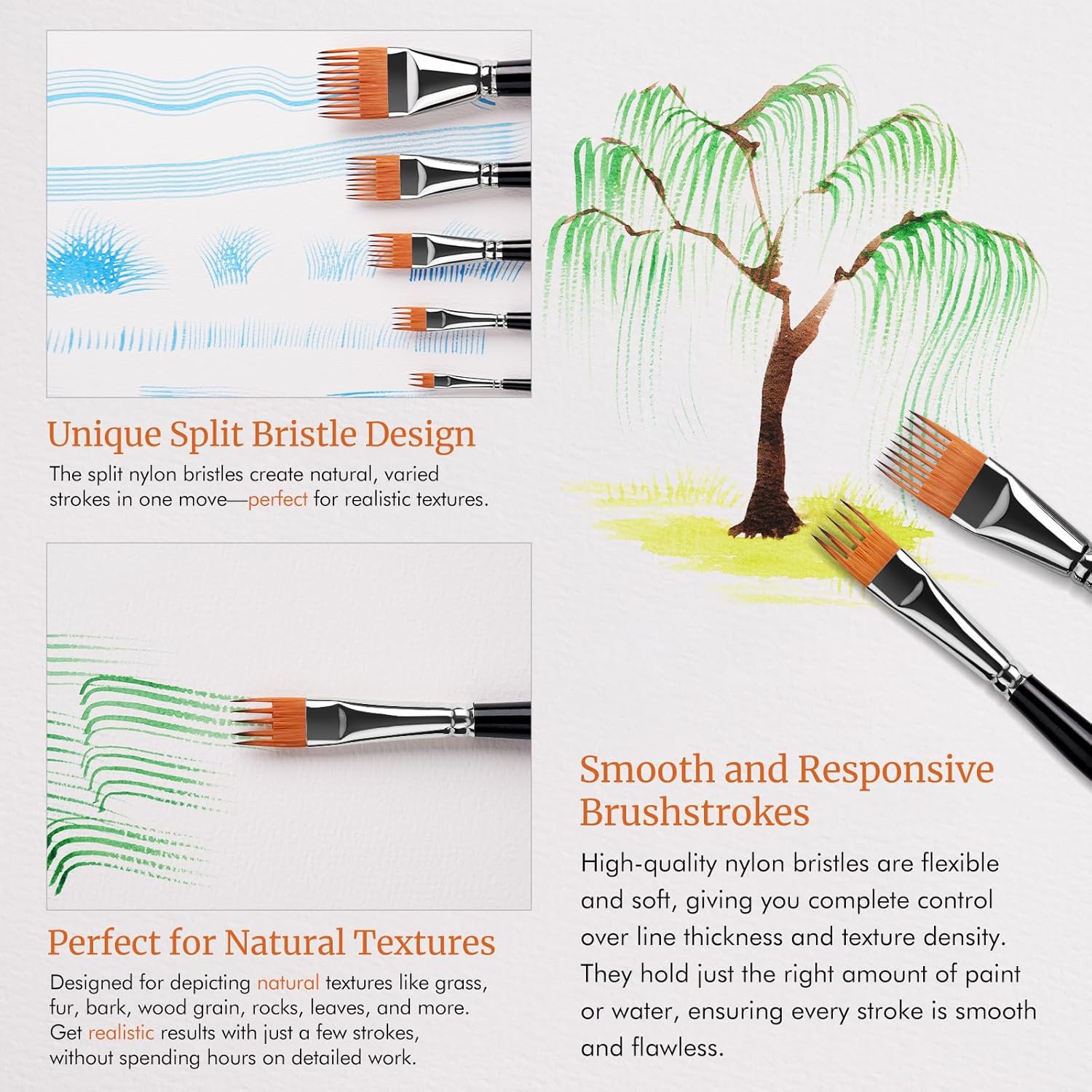 - Multiple Sizes – This set includes five different sizes (1/4", 1/2", 5/8", 1" and 1 1/2"), giving you maximum flexibility for any type of art project. The smaller sizes are ideal for adding fine details, fine lines and small decorative effects, while the larger ones are perfect for covering large surfaces, creating layered backgrounds or quickly adding texture to walls, furniture and large canvases, ensuring you always have the right brush on hand, no matter what project you're on you are working.