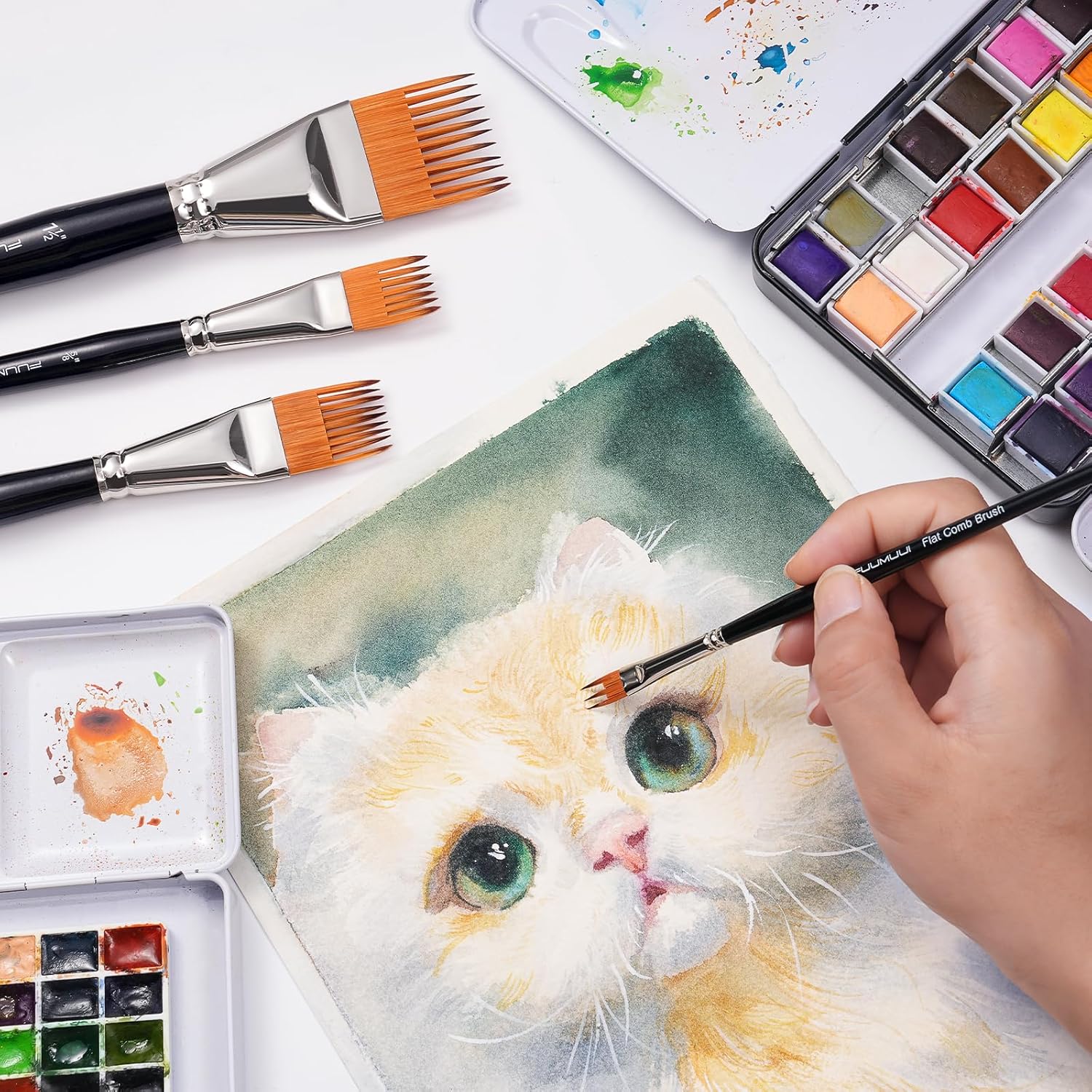 - Wide Application - This comb brush is perfect for use with acrylics, oil, gouache, watercolor, inks or other paint types, on smooth to lightly textured surfaces, including canvas, paper, wood, metal, glass, fabric, ceramic and more.