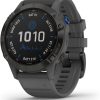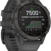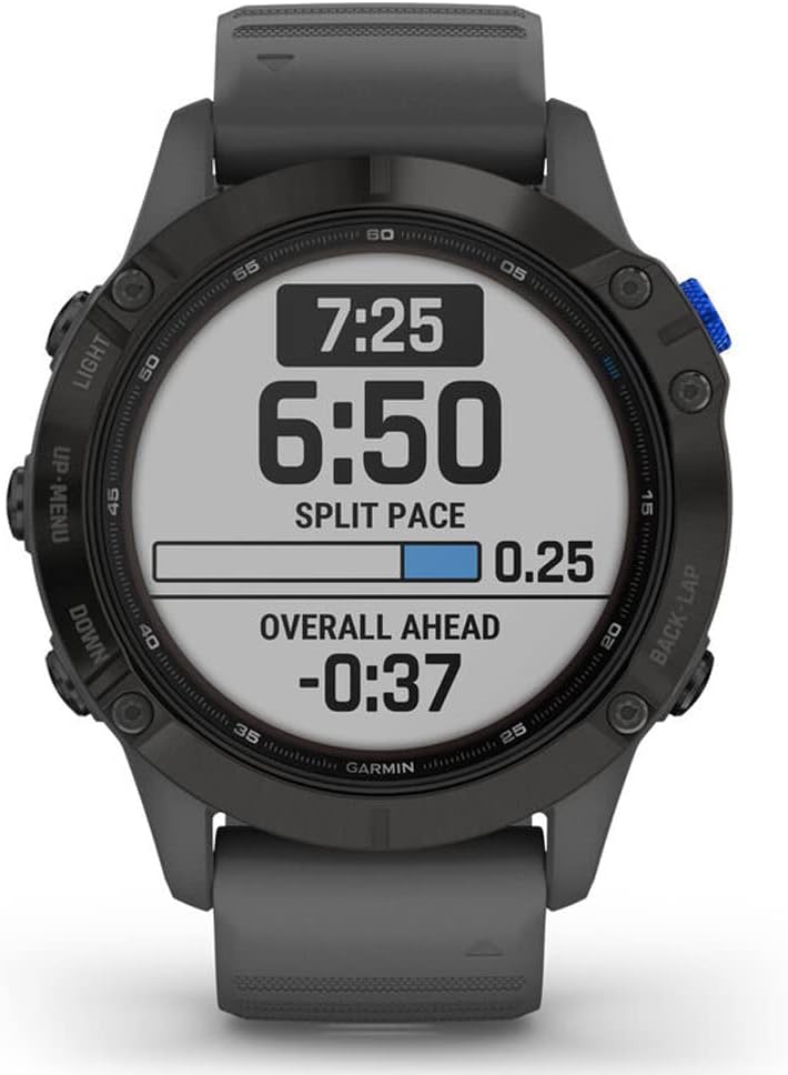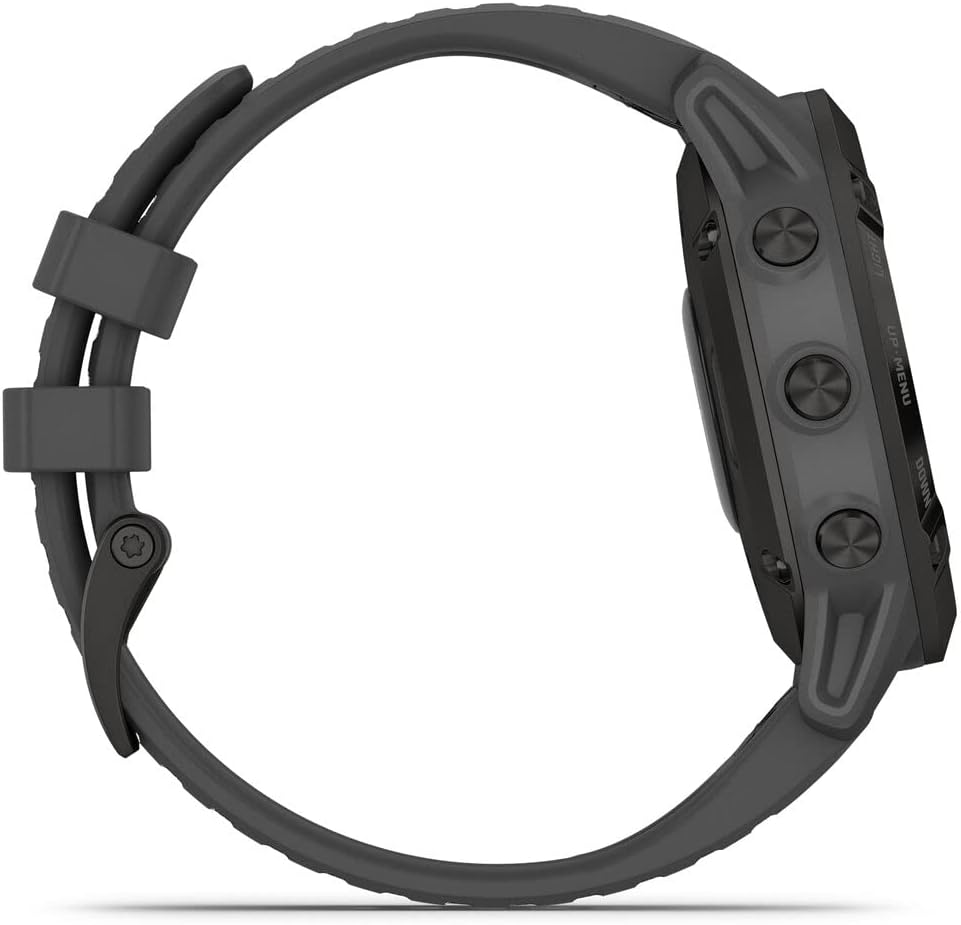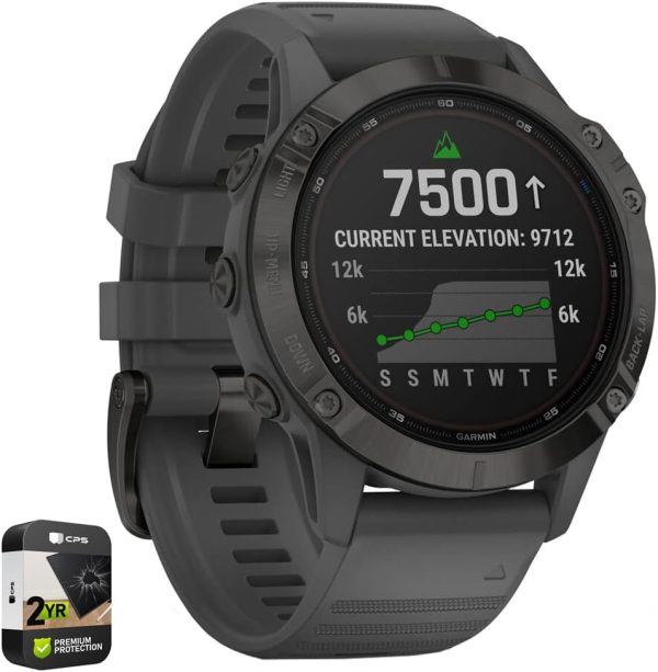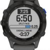 مشخصات فنی: fenix 6 Pro Solar Unit ابعاد: 51 x 51 x 14.9mm جنس لنز: Corning Gorilla Glass 3 Bezel جنس: فولاد ضد زنگ تیتانیوم الماس مانند کربن (DLC) با پوشش تیتانیوم جنس بدنه: پلیمر تقویت شده با الیاف با روکش فلزی در پشت جنس: (بندهای ساعت QuickFit) سیلیکون، چرم یا تیتانیوم اندازه صفحه نمایش، وضوح، نوع: 1.4 اینچ (35.56 میلی متر) قطر 260 x 260 پیکسل قابل مشاهده در نور خورشید، حافظه انتقالی در پیکسل (MIP) وزن: فولاد 93 گرم (فقط قاب 66 گرم) نوع باتری: لیتیوم یون داخلی قابل شارژ عمر باتری: ساعت هوشمند: تا 14 روز GPS: تا 10 ساعت GPS + موسیقی: حداکثر 10 ساعت باتری حالت GPS: 72 ساعت Expedition حالت GPS: 28 روز صرفه جویی در باتری حالت تماشا: 48 روز رتبه آب: 10 ATM/100 متر8 فناوری های بی سیم: Wi-Fi، BLUETOOTH و ANT حافظه/تاریخچه: 32 گیگابایت