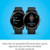 ایده آل برای ورزش ➡ بیش از 25 برنامه از پیش بارگذاری شده برای ورزش های فضای باز و سرپوشیده، از جمله دویدن، دوچرخه سواری، شنا، تناسب اندام و بسیاری دیگر. برنامه های رایگان تمرین دویدن مربی گارمین و تمرینات از پیش تعریف شده یوگا، پیلاتس، کاردیو و قدرت عملکردی با انیمیشن های تمرینی سخت روی نمایشگر.