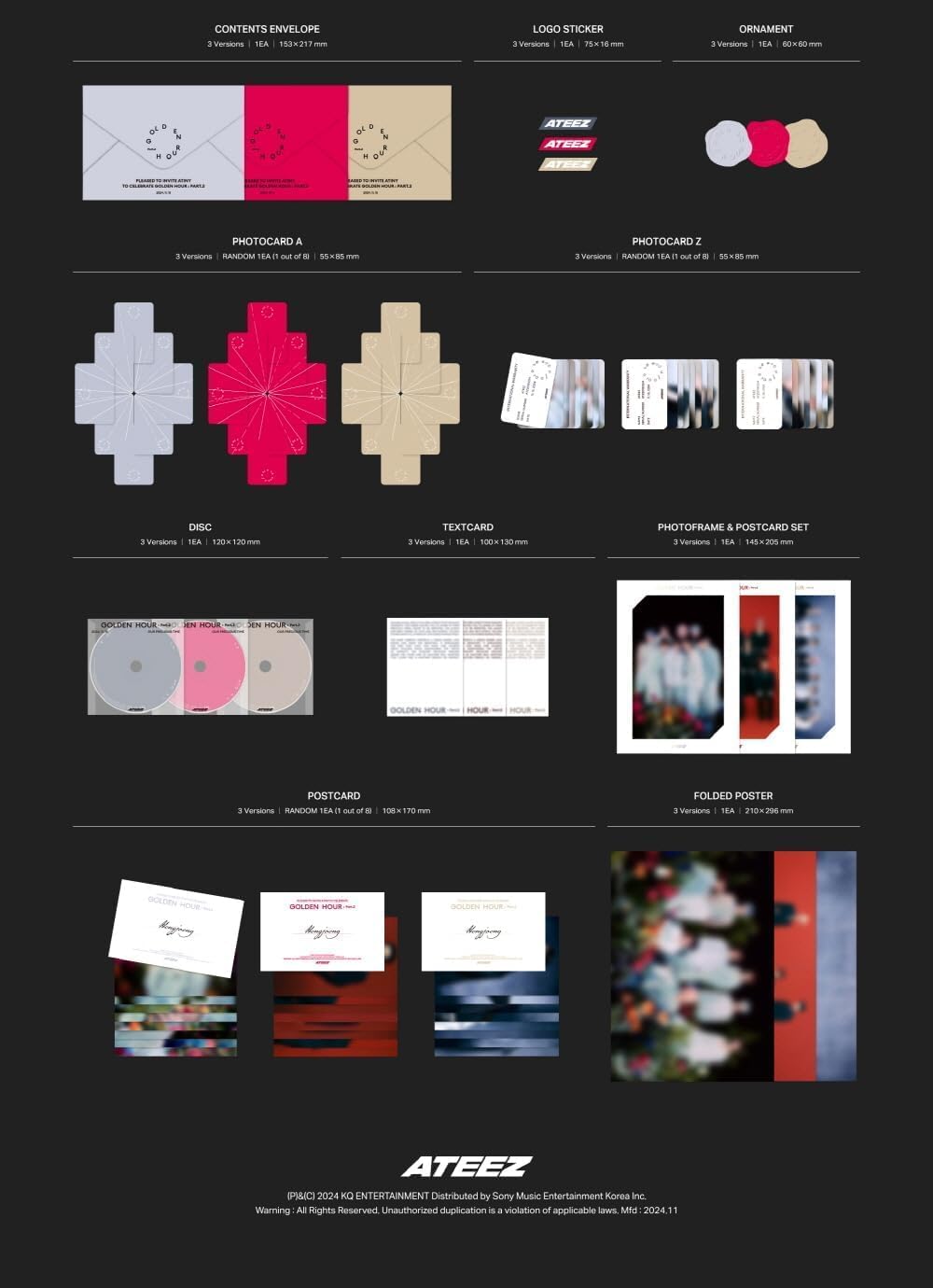 مورد بیرونی فقط محافظت از اجزاء در داخل است ، بنابراین خسارت های جعبه نمی تواند دلیلی برای بازگشت یا مبادله باشد. لطفاً در صورت بروز هرگونه موارد معیوب یا گمشده در داخل ، یک فیلم بدون جعبه را بلافاصله بگیرید. تاریخ انتشار: 2024.11.15 CD + 120p Photobook + محتوای پاکت + محتوای آرم + تزئین + Photocard A (تصادفی 1 از 8) + Photocard Z (تصادفی 1 از 8) + TextCard + Frame و Peetcard + Peetcard (تصادفی 1 از 8) + پوستر تاشو (روی بسته) دارای فوتوکاردهای اضافی دو طرفه است که از کره تنظیم شده است ، جمهوری 100 ٪ اصلی با نام تجاری جدید به نمودار Hanteo و Gaon خواهد بود