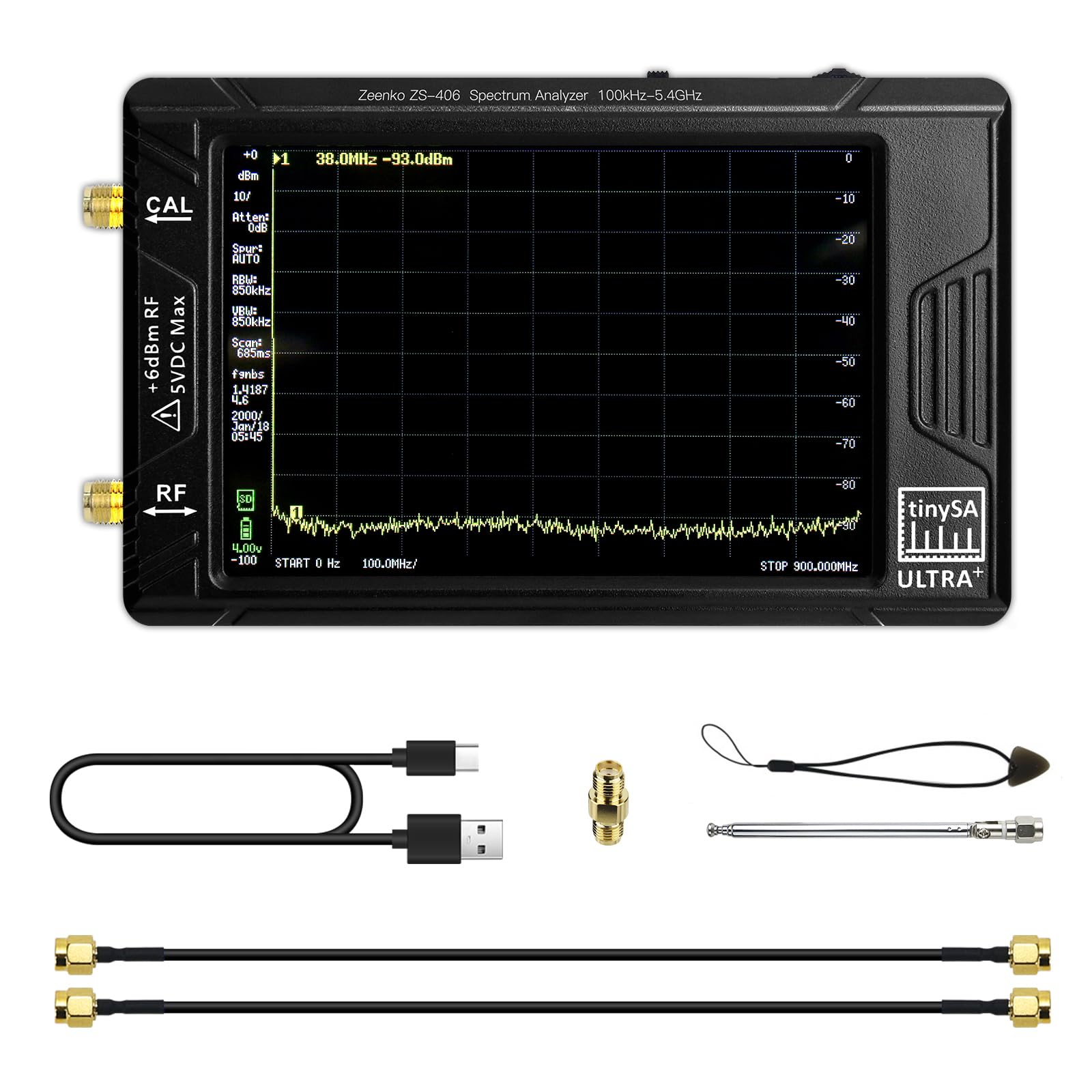 - Long battery life: Tinysa Ultra+ ZS-406 Analyzer rechargeable battery integrated by 5000 mAh, with type C recharging cable and can be used up to 12 hours.
