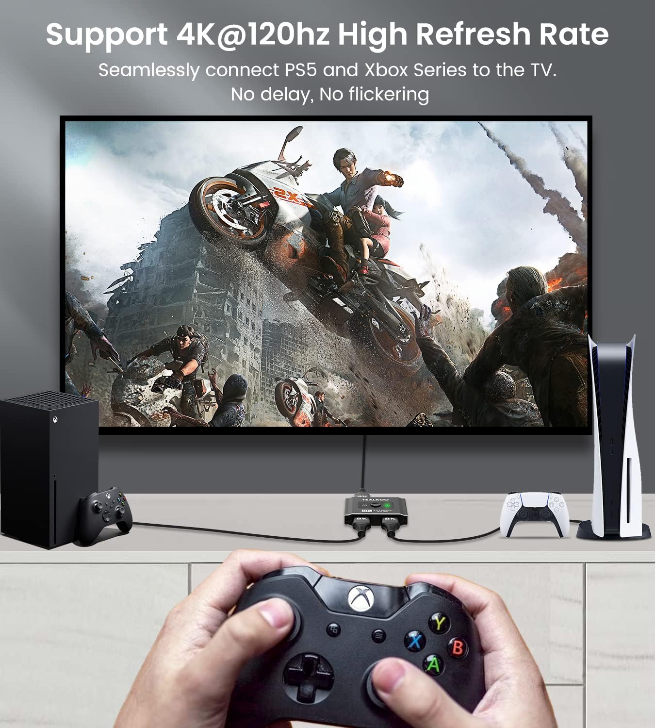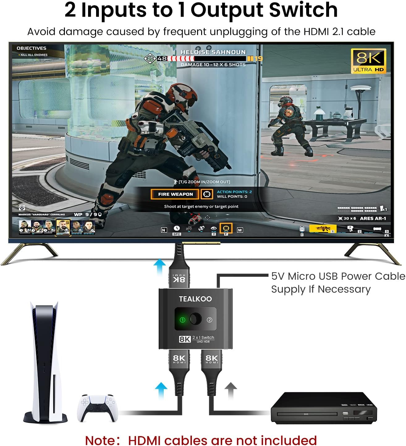 سوئیچ HDMI 8K@60Hz 4K@120Hz، جداکننده HDMI دو جهته آلومینیومی 2 در 1 بیرون یا 1 در 2 خروجی، سوئیچ HDMI 2.1 از دینامیک HDR UHD HDCP2.2، شکاف HDMI برای تلویزیون، PS4/5، Xbox-Series X، Blu- پشتیبانی می کند. اشعه پرتو و غیره