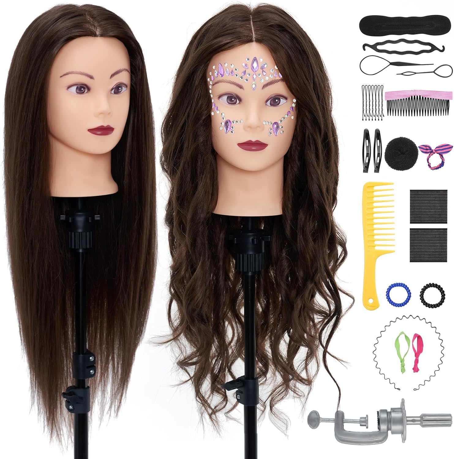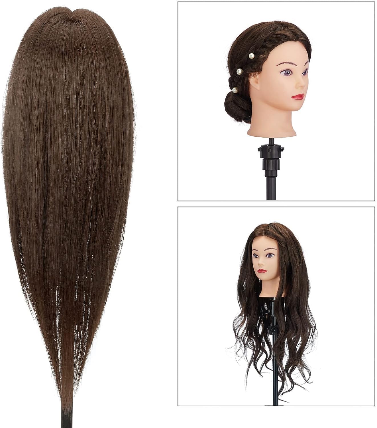 سر برای آرایشگاه ها ، Neverland 28 "80 ٪ آرایشگاه موهای واقعی مو ، آرایشی و بهداشتی مانکن مدل آموزش عملی مو با گیره + لوازم جانبی DIY (قهوه ای)