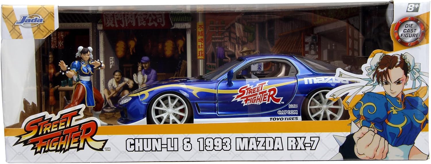 - Set of 2 in 1: The chun-li action heroine receives help: Jada Toys' metal statuette is accompanied by a Mazda RX-7 car model (1993) with a Street Fighter design!