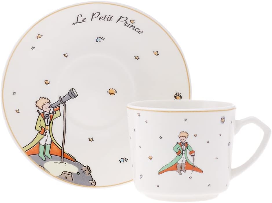 - 12 Piece Coffee Mug Set: This small coffee mug set consists of 6 matching white porcelain cups with matching saucers. The joy of sipping your morning coffee from a cup features delicate illustrations inspired by the Little Prince.