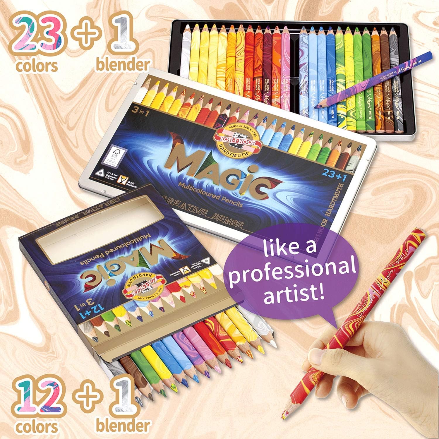 - Writing instrument shape: Colored pencil