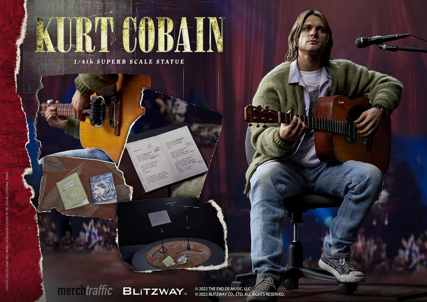 توضیحات موهای بلوند درهم، ژاکت قدیمی نمادین گرانج، احساس تیره پشت زیبا… Blitzway مجسمه جدید در مقیاس 1/4، کرت کوبین را ارائه می دهد. در حالی که ستاره افسانه ای راک در دهه 90 موسیقی آلترناتیو راک را نمایندگی می کرد، کرت کوبین در دهه 90 مخالف روند فرهنگی بود و راه را به روش خود هموار کرد. هدف هنرمندان Blitzway در ابتدا یافتن و بیان احساس شخصی کورت کوبین به عنوان تنها مرد بود. ما مجسمههای سر طراحی کردیم که ظرافتهای زیادی ایجاد میکرد و شامل لوازم جانبی مختلفی برای بازتولید صحنههای افسانهای در تاریخ موسیقی مدرن بود. قهرمانی که در دهه نود نوستالژیک به جای ما برای روح و قلب ما آواز خواند. کرت کوبین برای همیشه در کنار شما خواهد ماند. * ارتفاع: حدود 37.1 سانتی متر. * بسته بندی: EPP رنگی + جعبه رنگی جنس: * سر: پی وی سی * بدنه: پلی استون با لباس پارچه * لباس: پارچه * لوازم جانبی: پلی استون، پی وی سی، ABS، کاغذ * فرش: پارچه هشدار ایمنی محصول حاوی قطعات کوچکی است که به عنوان خطر خفگی در نظر گرفته می شود.