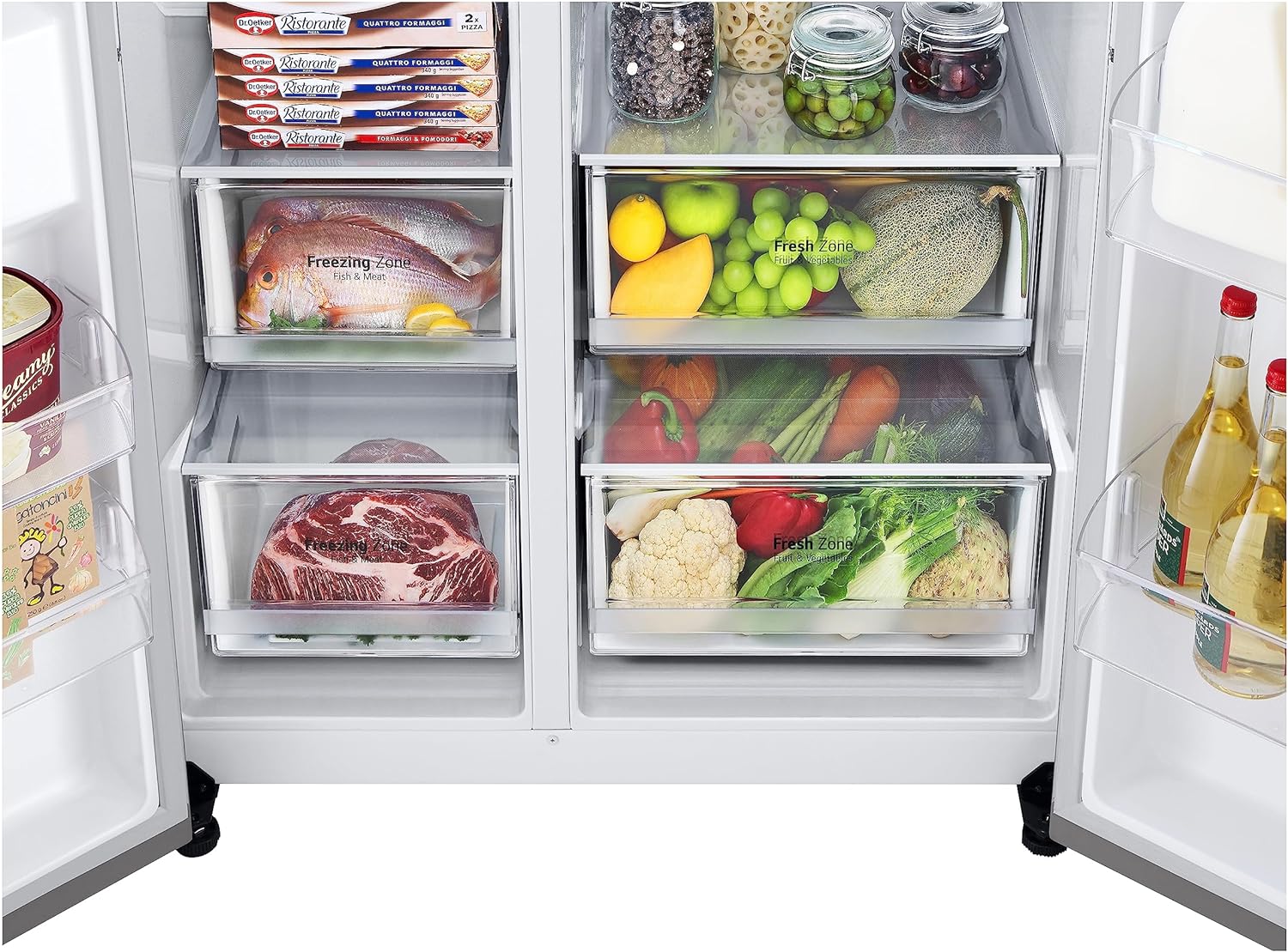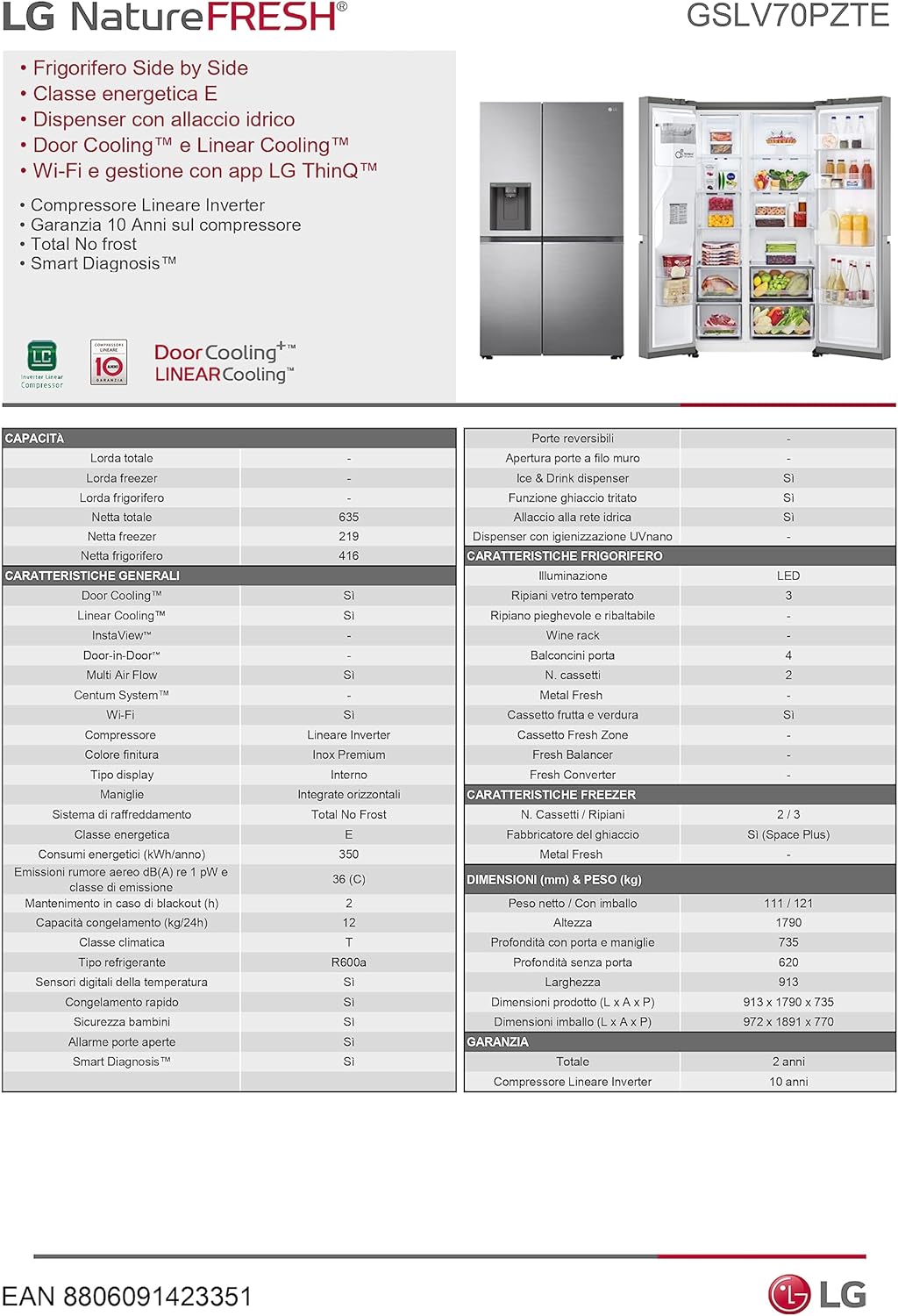 lg gslv70pzte american refrigerator side by side total no frost class e 635l wi fi door linear cooling technology water dispenser and ice with connection smart diagnosis stainlessnessمشاهده محصول در آمازونبرند : LG