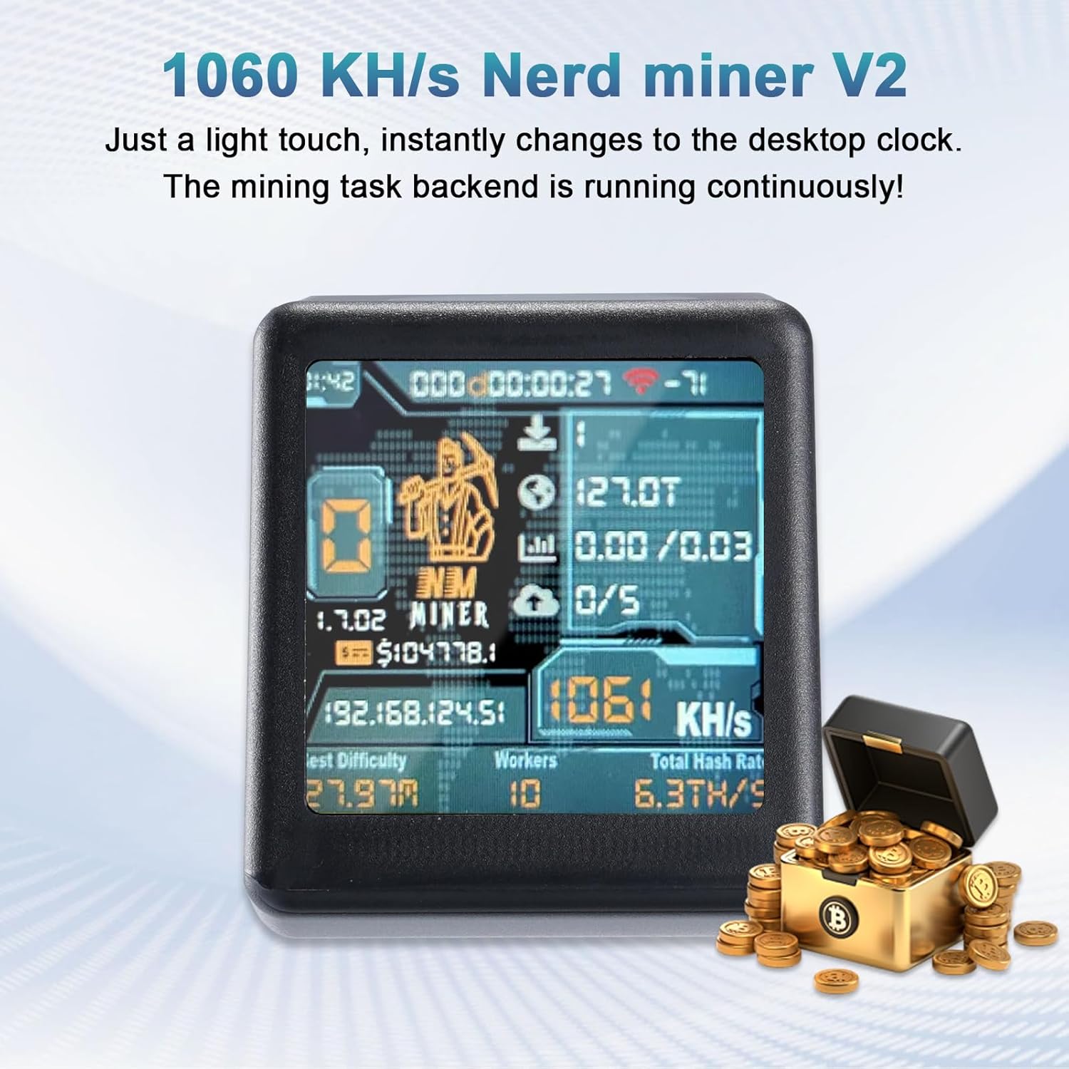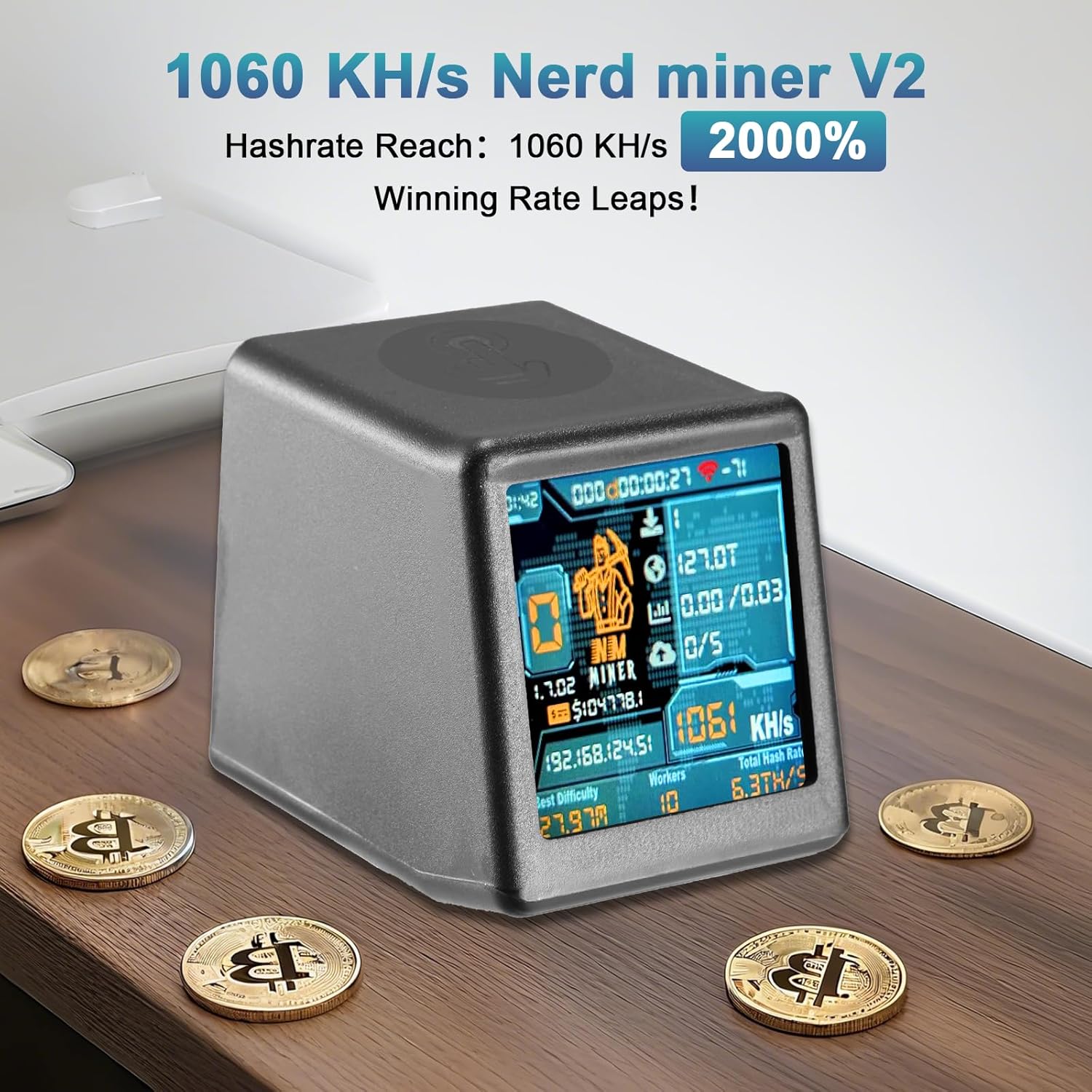 - 【High Hash Rate Performance】:Equipped with optimized ESP32 firmware (version 1.7.x), this Nerd Miner v2 compatible Bitcoin miner offers a hash rate of up to 1061 KH/s, ensuring a higher winning chance of up to 2000%.