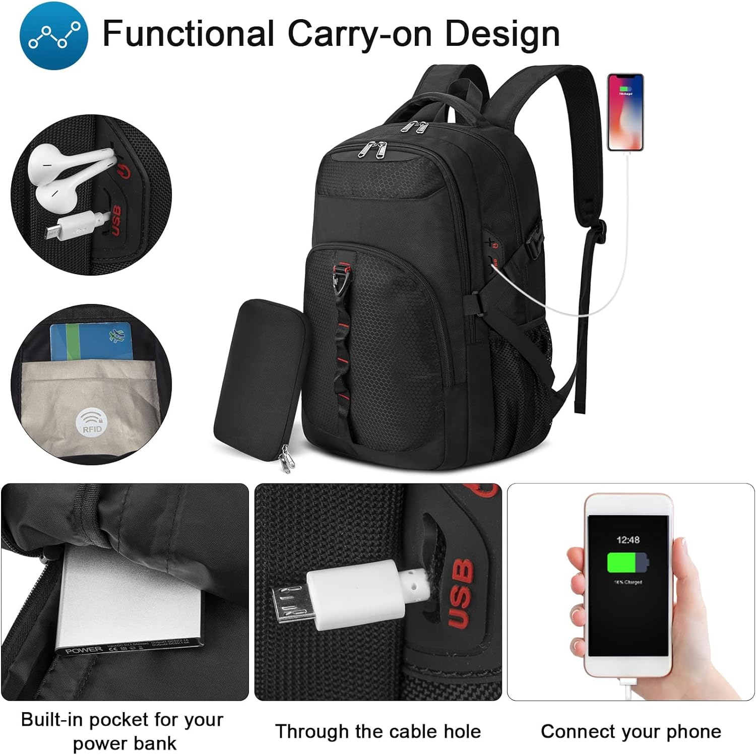 Newhey Backpack PC 17 -inch PC با کوله پشتی کیسه ای سازمان دهنده کار مردان ضد آب با کوله پشتی بزرگ سفر سیاه USB