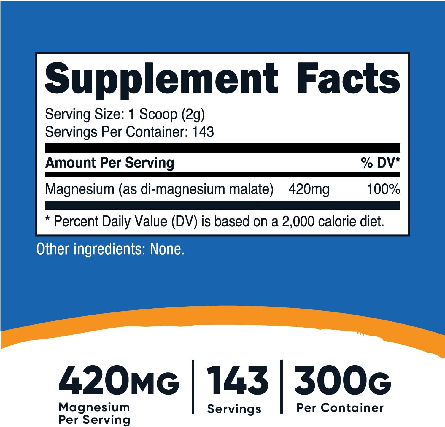 هر کانتینر 300 گرم از MAINSIUM MAIRSEIM MALATE حاوی 420 میلی گرم منیزیم برای سرو است. این آزمایشگاههای غیر GMO ، بدون گلوتن ، بدون سویا ، دوستانه گیاهخواری است و توسط آزمایشگاههای مستقل (شخص ثالث) آزمایش شده است.