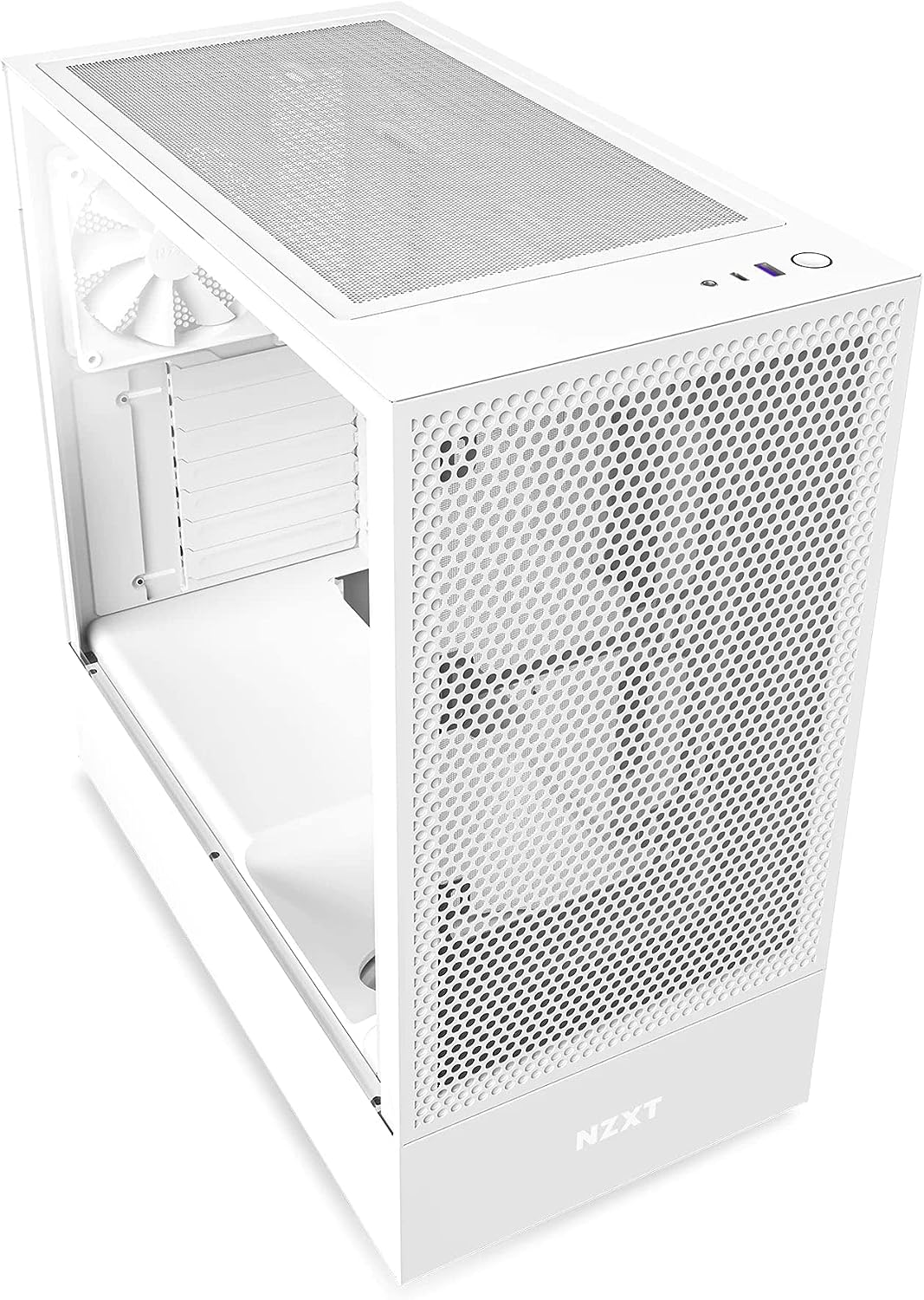 NZXT H5 Flow – CC-H51FW-01 – Case ATX compatto Mid-Tower – Pannello frontale perforato – Pannello laterale in vetro temperato – 2 ventole da 120 mm incluse – Supporta radiatori da 280 mm – Bianco Flow. Bianco