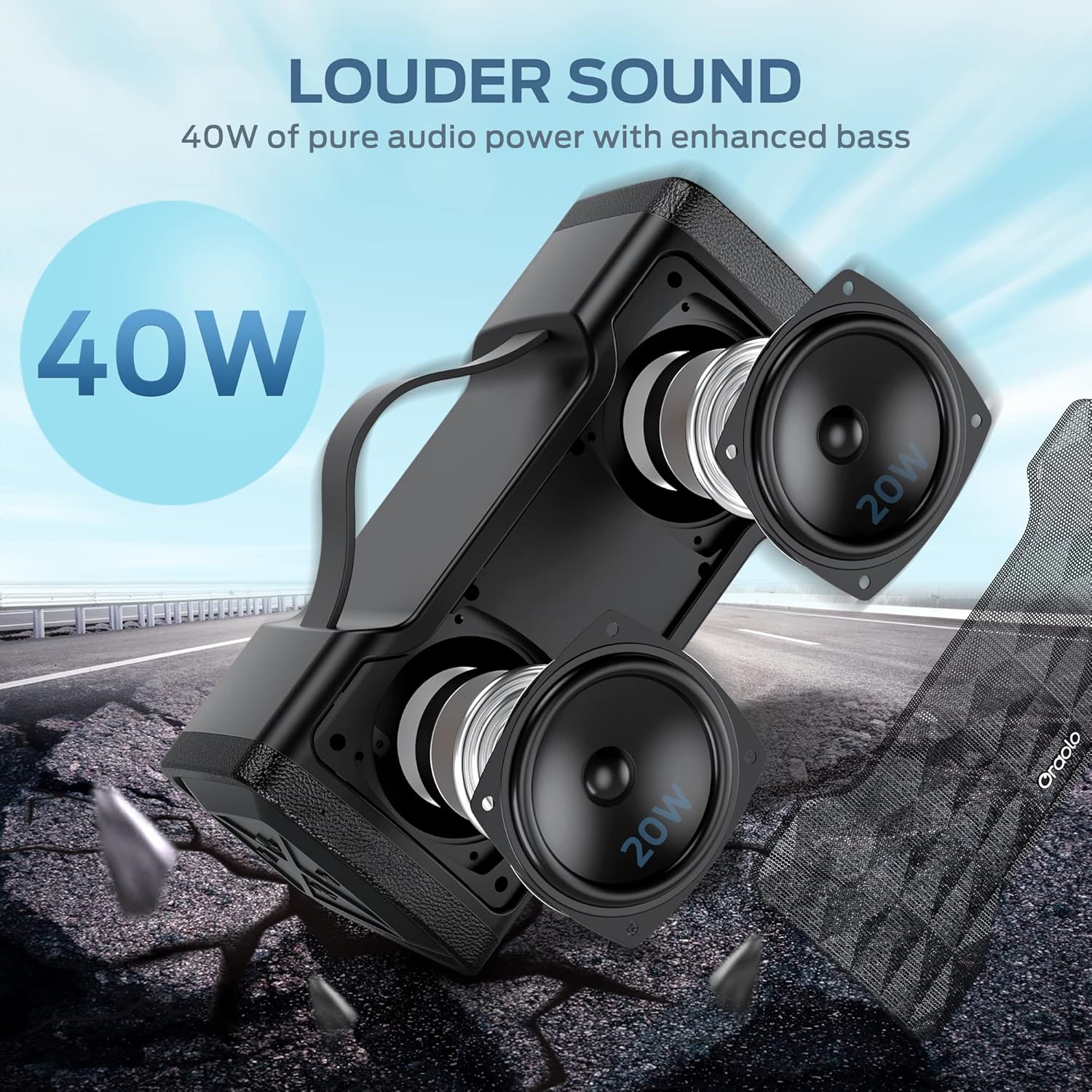 بلوتوث Oraolo Cassa Power ، بلندگو 40W بلند ، بلوتوث ضد آب IPX6 ، ورودی میکروفون/USB/AUX برای حزب داخلی سیاه در فضای باز