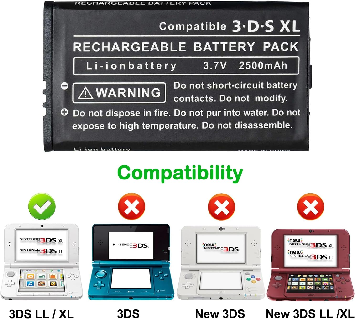 Osten 2500mAh 3.7V باتری مرتب سازی لیتیوم قابل شارژ + کیت سازگار برای Nintendo 3DS LL/XL