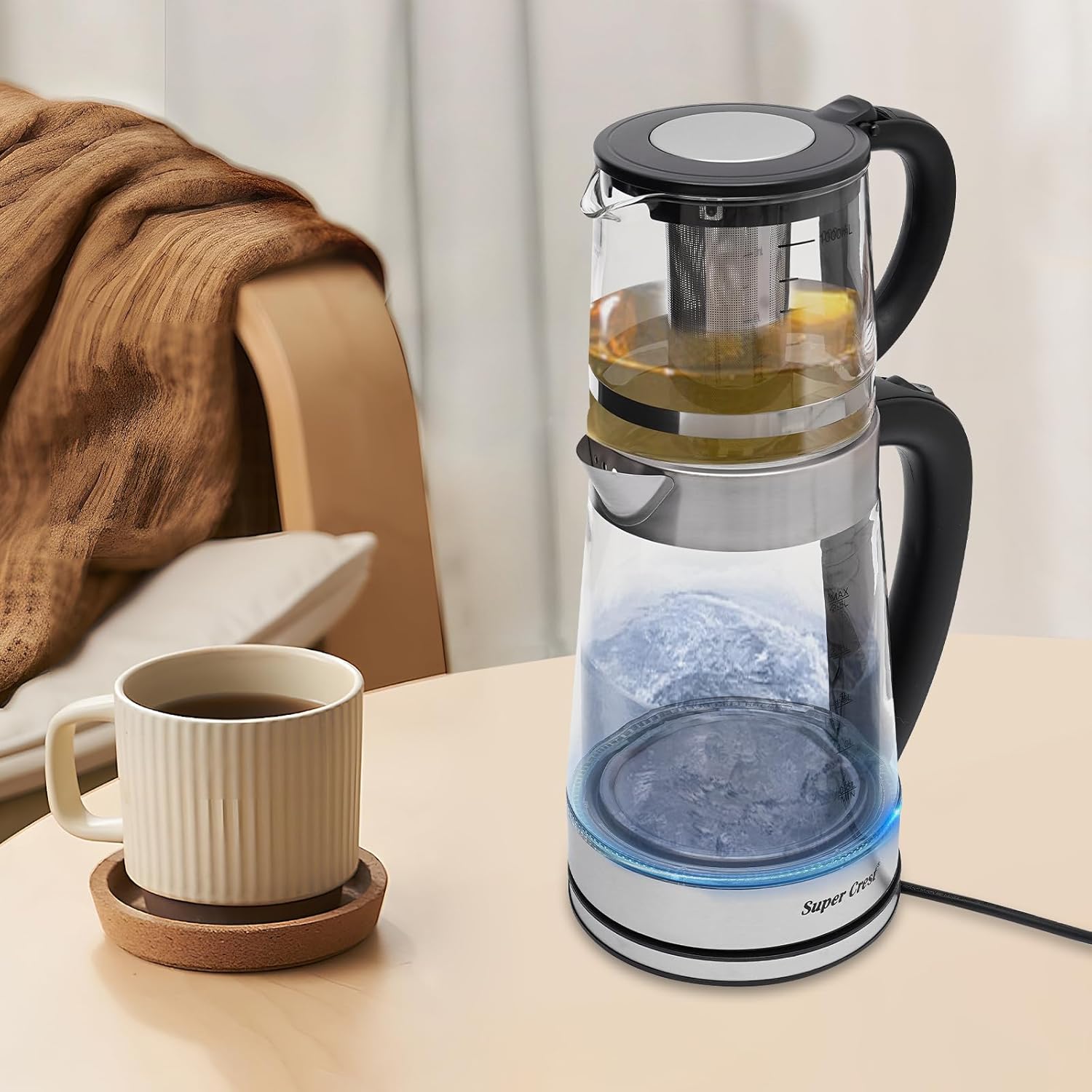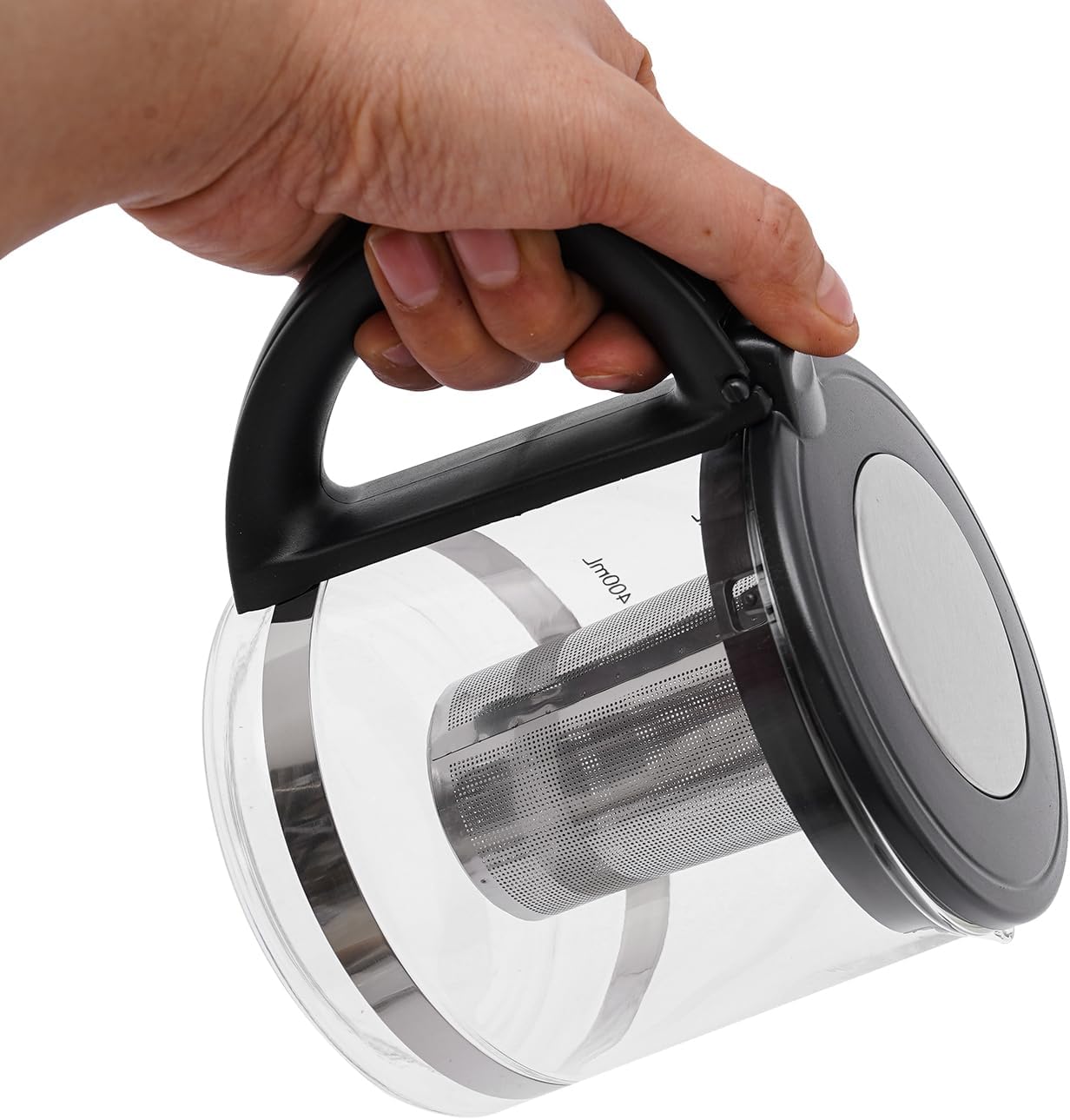 - Humanized Design: The transparent body allows a clear view inside the carafe and prevents dirt from hiding inside, and the water level line is designed to easily control the amount of water. The small teapot comes with a tea strainer where you can put loose tea leaves and tea bags (not included) and separate the tea water, making tea making much easier