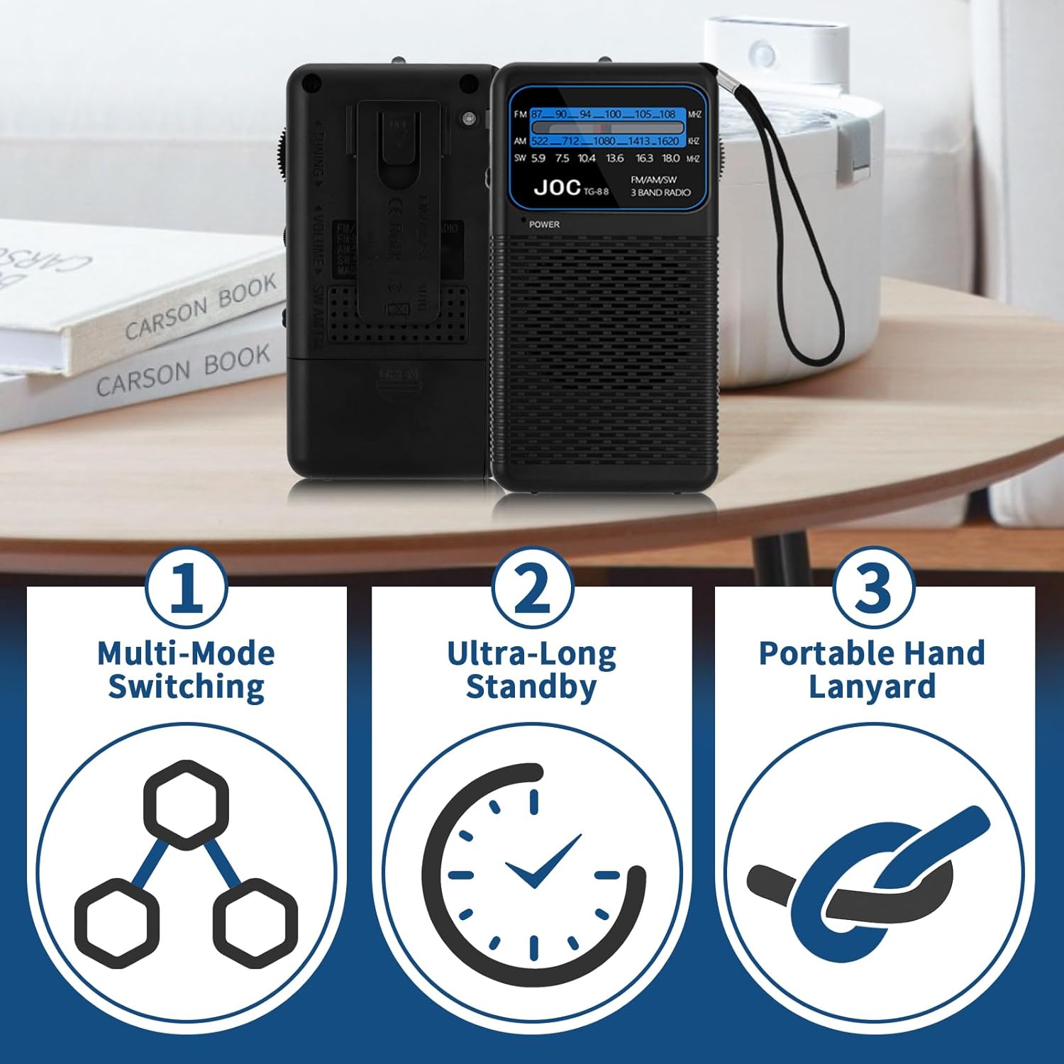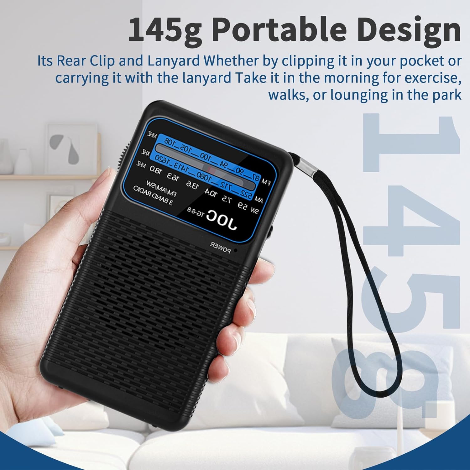 - [PORTABLE CARABINER DESIGN] Thanks to the convenient carabiner and lanyard, this small portable radio is easy to carry. You can clip it on your belt or keep it in your pocket, perfect for listening to the radio during outdoor activities.