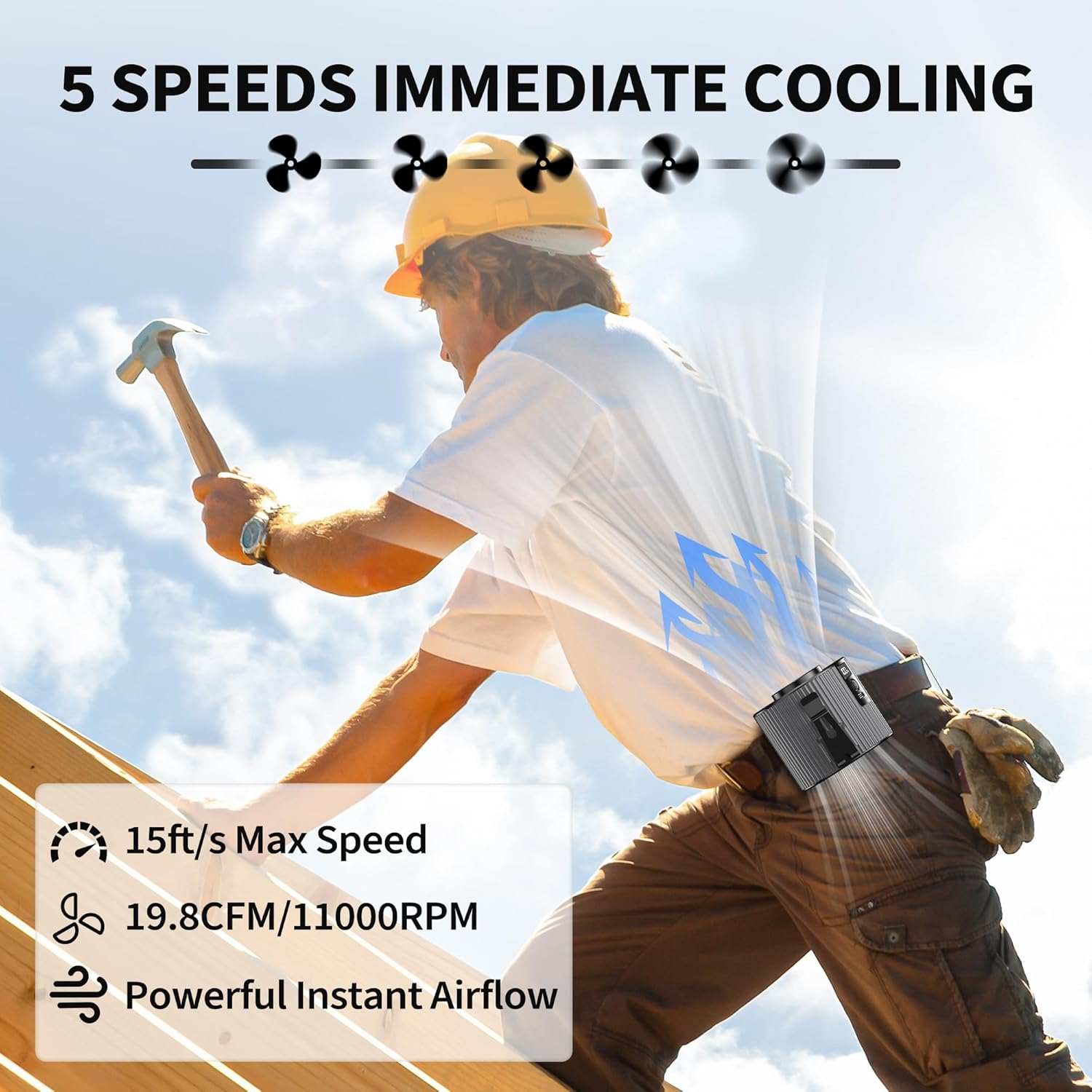 portable waist fan personal fan clip on with rehargeable battery operated 5 speeds 11000rpm 20h cooling hands free belt fan for outdoor jobsiteمشاهده محصول در آمازون