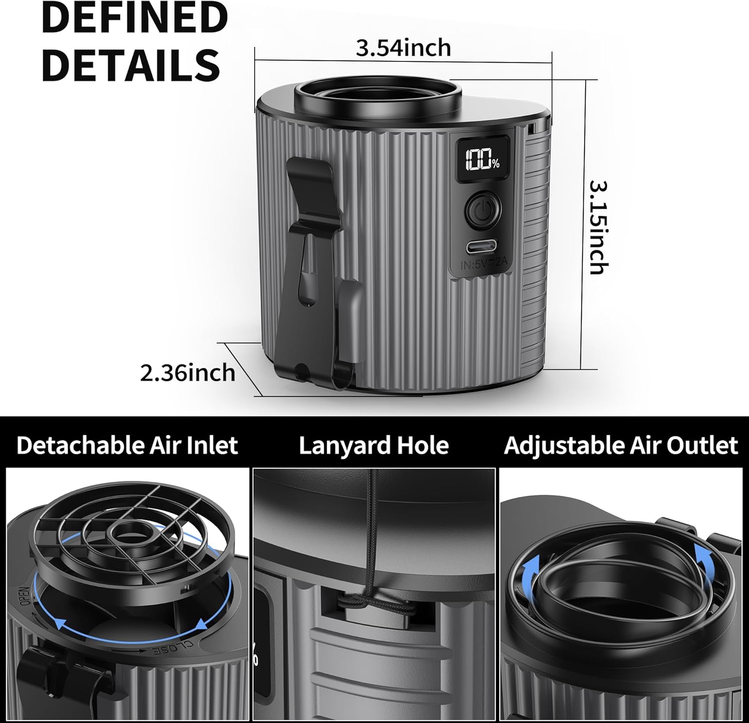 پنکه کمر قابل حمل ، کلیپ فن شخصی با باتری قابل استفاده مجدد ، 5 سرعت ، 11000 دور در دقیقه ، خنک کننده 20 ساعت ، فن کمربند هندزفری برای محل کار در فضای باز