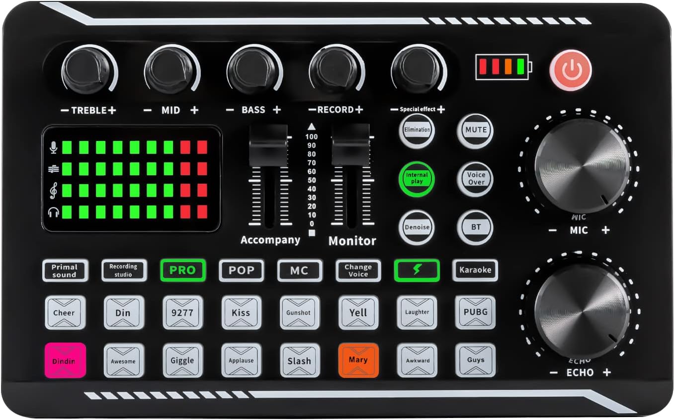 توضیحات یک کارت صوتی خوب می تواند کیفیت پخش زنده را بهبود بخشد و تماشاگران بیشتری را به خود جلب کند. این کارت صوتی فقط نمی تواند نیازهای مختلف صدای شما را برآورده کند ، بلکه سازگاری قوی و یک ارتباط مناسب نیز دارد. او یک دستیار قدرتمند برای پخش زنده شما است! جزئیات: Round Edge: این محصول دارای لبه های صاف است که می تواند از خراشیدن پوست در هنگام نصب جلوگیری کند یا از آن استفاده کند تا از امنیت شما بهتر محافظت کند. دکمه های پاک: دکمه های محصول بسیار سبک هستند و هر دکمه با عملکرد مربوطه مشخص می شود. این امکان را به شما می دهد تا راحت تر و راحت تر باشید. سوئیچ صوتی: این کارت صوتی تنظیمات یک پیچش را دارد. این از جلوه های صوتی متعدد ، مانند صدای زن با صدای مرد ، صدای مرد با صدای زن ، صدای هیولا و صدای کودک پشتیبانی می کند. این می تواند سرگرم کننده تر برای مطالعه زنده شما باشد. استفاده: این محصول می تواند برای DJS ، ضبط های استودیوی موسیقی ، کارائوکه آنلاین ، پادکست ، آواز ، کارائوکه ، پخش زنده ، گپ آنلاین و غیره استفاده شود. این برای تلفن های همراه و رایانه ها مناسب است و سیستم های Windows/Android/IOS را پشتیبانی می کند. مشخصات: مدل: F998. رنگ: مواد سیاه: پلاستیک. منبع درخشان: LED. جلوه های صوتی: 12 اثر صوتی سوئیچ: 4 پلتفرم سخت افزار: رابط کاربری PC: TYPE-C OTG AUDIO OUTPUT حالت: رابط Surround Hardware: بلوتوث قابل تنظیم: قابلیت باتری بالا ، متوسط و پایین: 1200 میلی آمپر ساعتی.