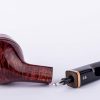 *مواد: کاسه لوله از Brriar (Bruyère ؛ ریشه برای درخت هیت) ساخته شده است که در ایتالیا (تامئو بریار تأمین کننده) رشد می کند ، و ساقه از اکریلیک ساخته شده است (تأیید شده در صنایع غذایی). سطح کاسه با موم Carnauba پوشانده شده است که می تواند جلا داده شود و یک اتاق (فضای داخل کاسه) از قبل کربنیزه شده است. چرا Briar ، چه چیزی لوله Brriar را منحصر به فرد می کند؟ اولین و مهمترین ویژگی مقاومت طبیعی آن است. دوم توانایی ذاتی آن در جذب رطوبت است. Bruyère آب را در طبیعت جذب می کند تا درخت را در لحظه های خشکسالی تغذیه کند و در عین حال رطوبت را که یک احتراق توسط محصول است ، جذب می کند. در نتیجه ، این یک تجربه دود تازه و خشک را می بخشد. این لوله مجهز به "فیلتر خنک کننده فلزی" است ، برای چیست؟ هدف صریح آن قطع جریان هوا است و از آنجا که از فلز ساخته شده است ، که تمایل به سردتر از دود دارد ، رطوبت اضافی تمایل به چگالش بر روی یا اطراف کندانسور خواهد داشت تا هرگز به دهان سیگاری نرسد. قابل جابجایی و تمیز کردن آن آسان است. اتاق قبل از کربنات است ، چرا؟ درمانی مبتنی بر عسل و غذای کربن برای محافظت از لوله در طول دوره ساخت ، روی دیواره داخلی کاسه اعمال می شود. در طول دود اولیه ، قندها موجود در عسل پودر ذغال سنگ که یک لایه محافظ فوری تولید می کند.