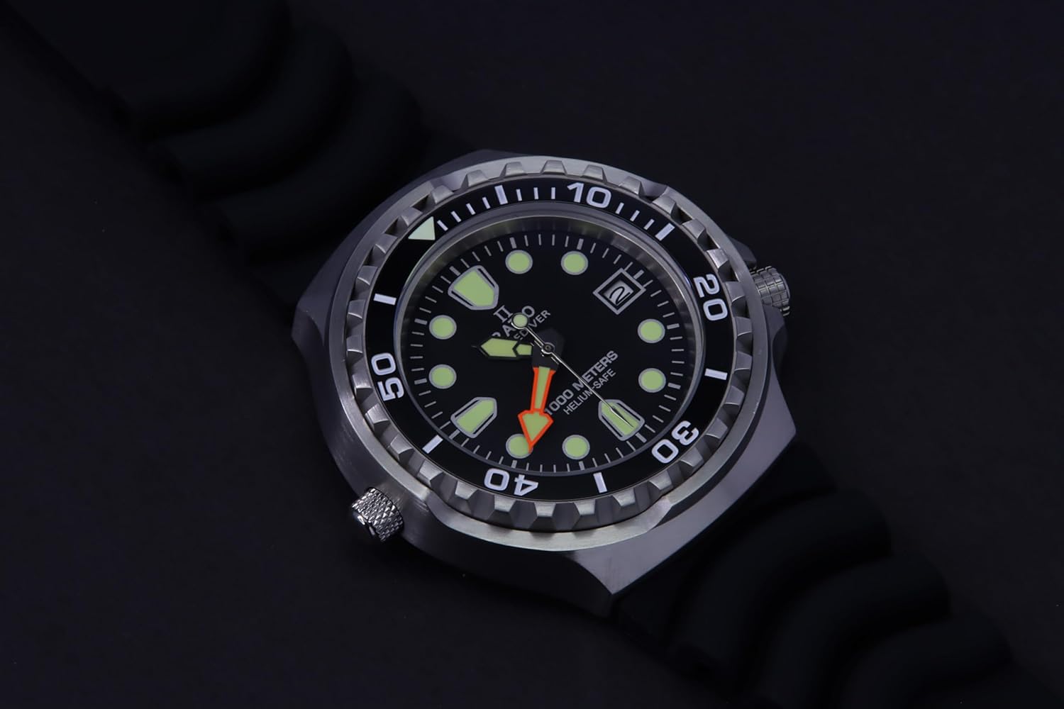 نسبت آزاد کننده ، ساعت زیر آب زیر آب نسل دوم با هلیوم ، حرکت کوارتز ، حرکت کوارتز ، مقاوم در برابر آب تا 1000 متر ، ساعت زیر آب مردان ، سیاه – بند در