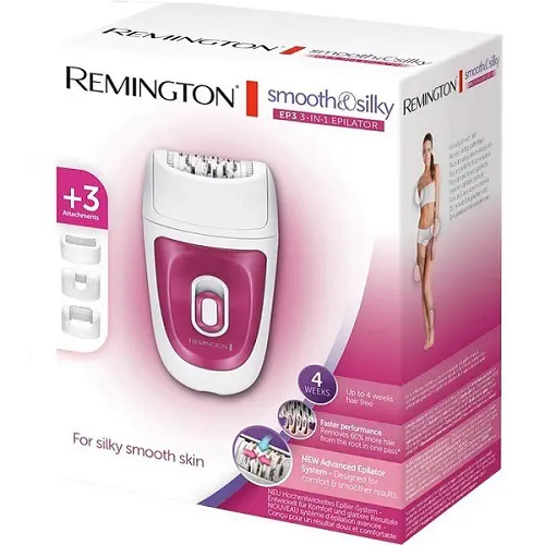 اپیلاتور ۳ در ۱ برند رمینگتون سیم دار بوده و با نیروی برق و میزان ولتاژ سرتاسر جهان سازگار است. اما این محصول ضد آب نیست و نمیتوان از آن در محیط مرطوبی مانند حمام یا زیر دوش استفاده کرد.