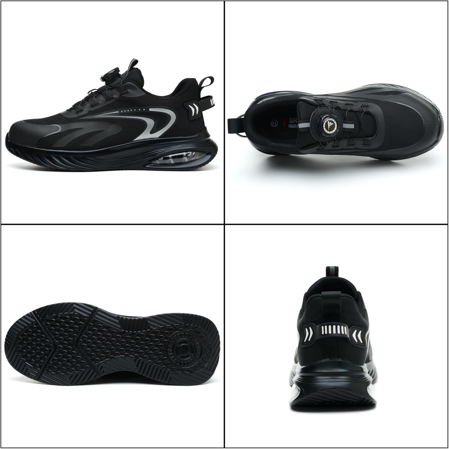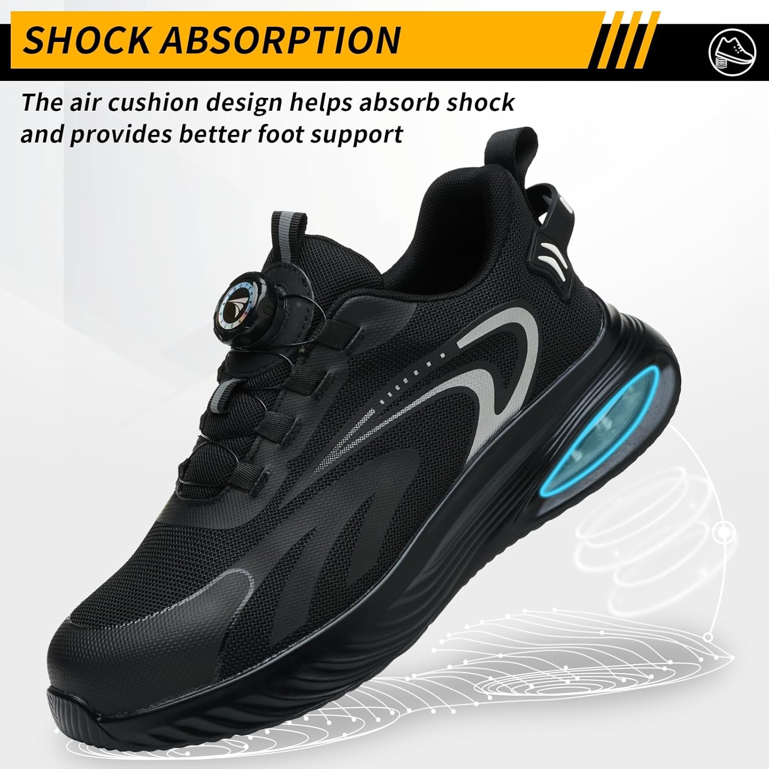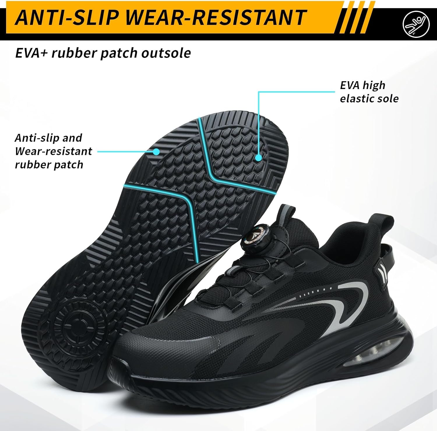 - Sole material: Non-slip and comfortable soles: The TPR material sole is wear-resistant and non-slip, with a special strong grip design and superior anti-slip performance, while the air cushion design of the sole greatly improves the cushioning function of the shoes. The European standard Kevlar midsole is able to withstand a force of 1200N, preventing foreign bodies from penetrating the sole, allowing you to work with complete peace of mind.