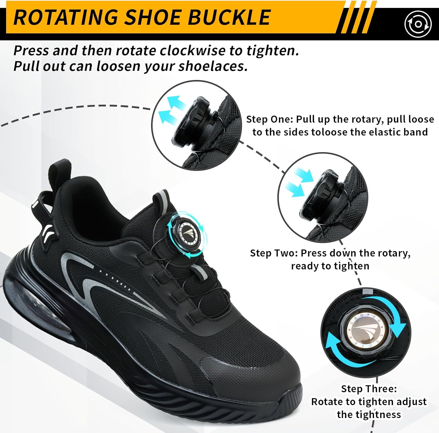 - Type of closure: Multifunctional Safety Shoe Laces: High quality swivel button laces replace the normal tying method, more convenient and faster, avoiding the troubles and accidental injuries caused by falling laces. These safety shoes are not only suitable for all types of work, but also very comfortable and fashionable to wear in your free time.