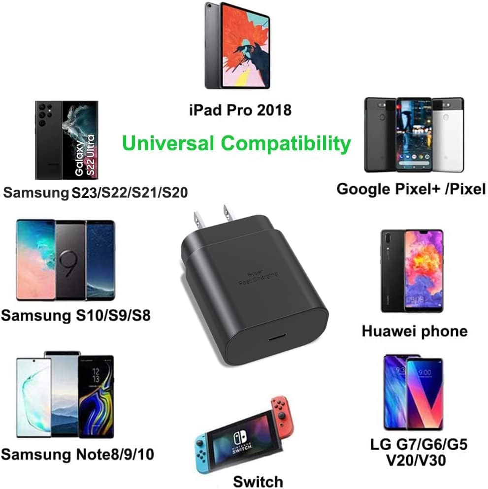 شارژر SAMSUNG SUPER FAST TYPE C ، 25W USB CHARGER WALL شارژر سریع شارژ برای سامسونگ Galaxy S23/S23 Ultra/S23+/S22/S22 Ultra/S22+/Note 20 Ultra/Note 10/Z Told 3 با کابل شارژر 10 فوت C 1pack 1pack
