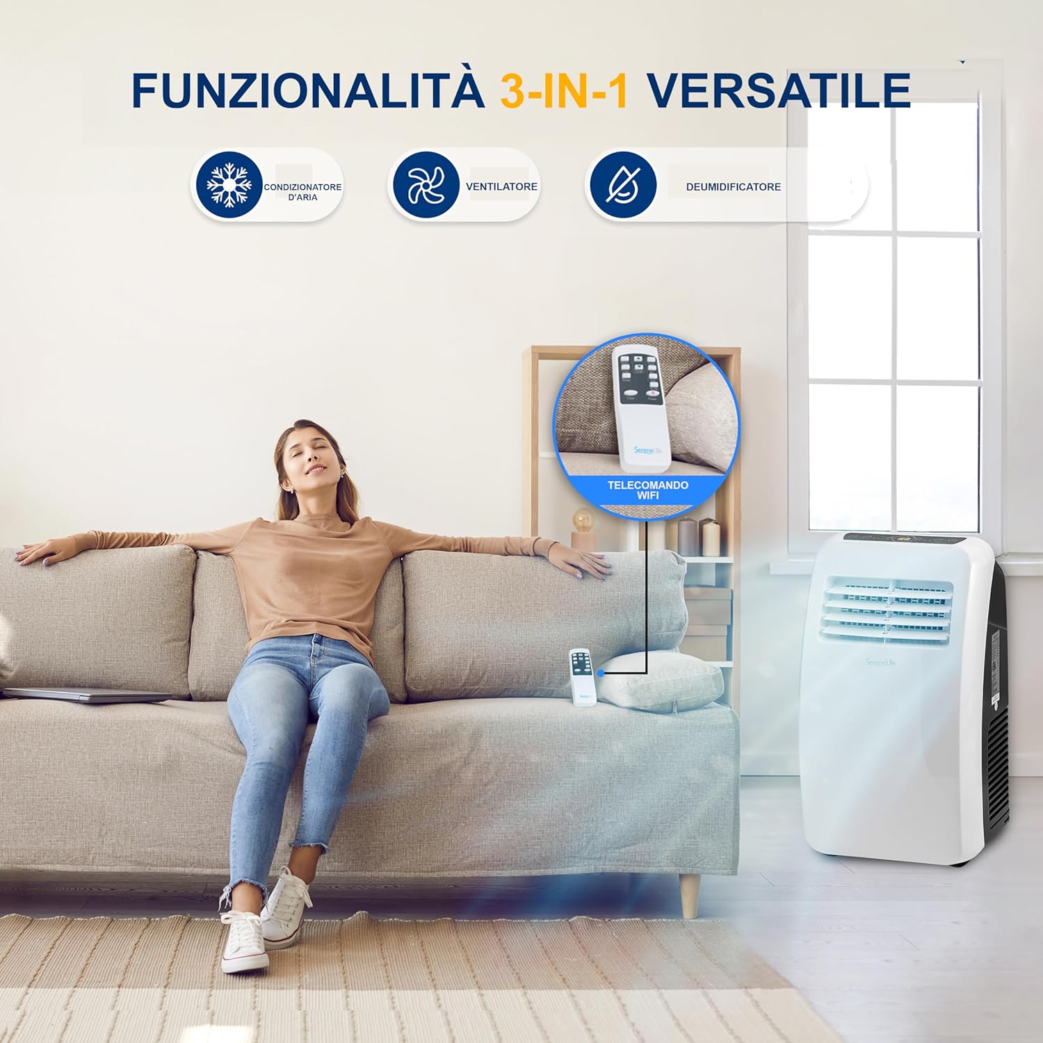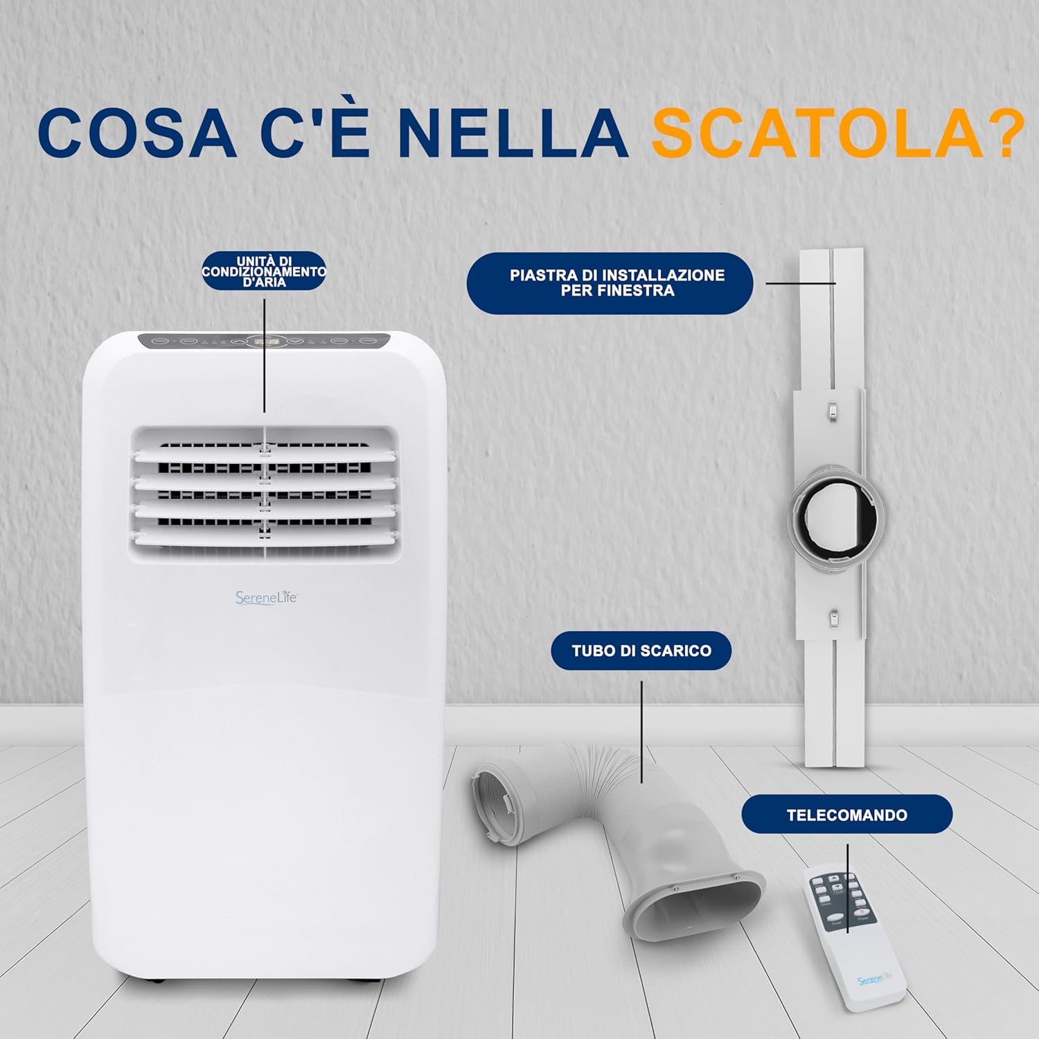 SerenElife SLPAC7EU 3-در 1 تهویه مطبوع قابل حمل ، دستگاه رطوبت ساز یکپارچه ، فن ، کنترل از راه دور ، کیت اگزوز پنجره ، 7000 BTU ، کلاس A ، 2.4 کیلوگرم ، 57 دسی بل ، سفید ، 900 W ، ABS مهندسی شده