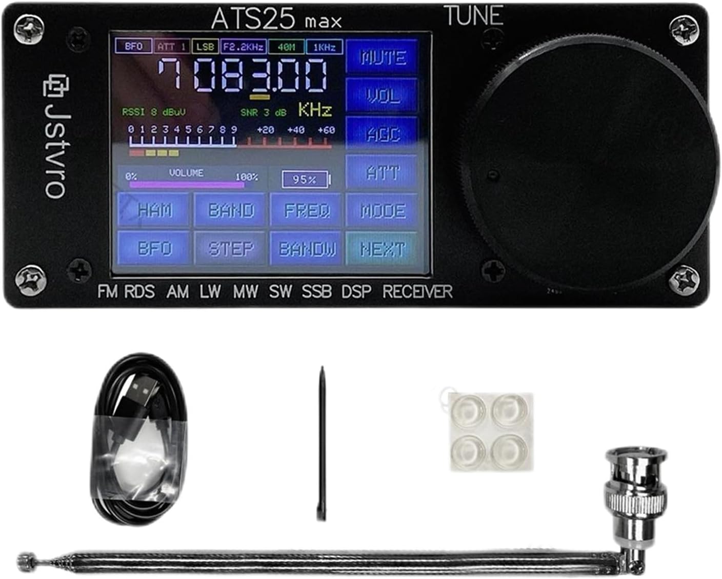 ویژگی ها: * ATS-25MAX AM FM رادیو قابل حمل ، گیرنده کامل باند DSP ، گیرنده DSP کامل ، به روز شده SI4732 ATS-25 با صفحه لمسی رنگ 2.4 اینچی ، باتری لیتیوم 3000 میلی آمپر. * SI4732 ATS-25 UPDATE جدید (5.2B MAX) TECMAD یک رادیو کامل رادیو SI4732 را با صفحه لمسی که برای علاقه مندان به رادیو به روز شده است ، راه اندازی کرده است. * حالت کار کلیدی نسخه SI4732 ATS-20 را بگذارید و یک صفحه لمسی 2.4 اینچی اضافه کنید. عملکرد راحت و سریع ویژگی اصلی این محصول است. * ظرفیت باتری 3000 میلی آمپر ساعت به شما امکان می دهد تا از زمان رادیو لذت ببرید. * 2023 نسخه جدید 5.2b * از عملکرد صفحه نمایش لمسی 2.4 اینچ پشتیبانی می کند * از تحقیقات پخش پشتیبانی می کند * از صفحه کلید عددی پشتیبانی می کند تا مستقیماً وارد فرکانس شود * پشتیبانی سریع کانال فرکانس کانال HAM * پشتیبانی باند پشتیبانی AM: 1 -6K * پشتیبانی تک باند باند جانبی: مشخصات فنی 0.5-4.0k: مدولاسیون فرکانس: عملکرد 64-108MHz/RDS طول و عرض: 153-500kHz megawatt: 520-1710 kHz نرم افزار: 1730-30000 khz باند تک جانبه: 1730 -30000 کیلوهرت از امواج کوتاه نیاز به یک آنتن موج کوتاه از مواد پوسته دارد: آلیاژ آلومینیوم با باتری لیتیوم ساخته شده در لیتیوم 3.7 ولت/3000mAh نوع C ، رابط شارژ مجدد نوع C ، حداکثر جریان بار 1.5 برای پشتیبانی از برنامه تازه سازی Type -C Aterfaccio پشتیبانی از استریو 3.5 میلی متر استریو خروجی صدا BNC رابط BNC پشتیبانی FM Audio 3.5 MM صفحه نمایش: 2.4 "خروجی صفحه لمسی که منتشر می شود: 1.5W> محتوای بسته: 1Setats-25Max AM FM رادیو قابل حمل